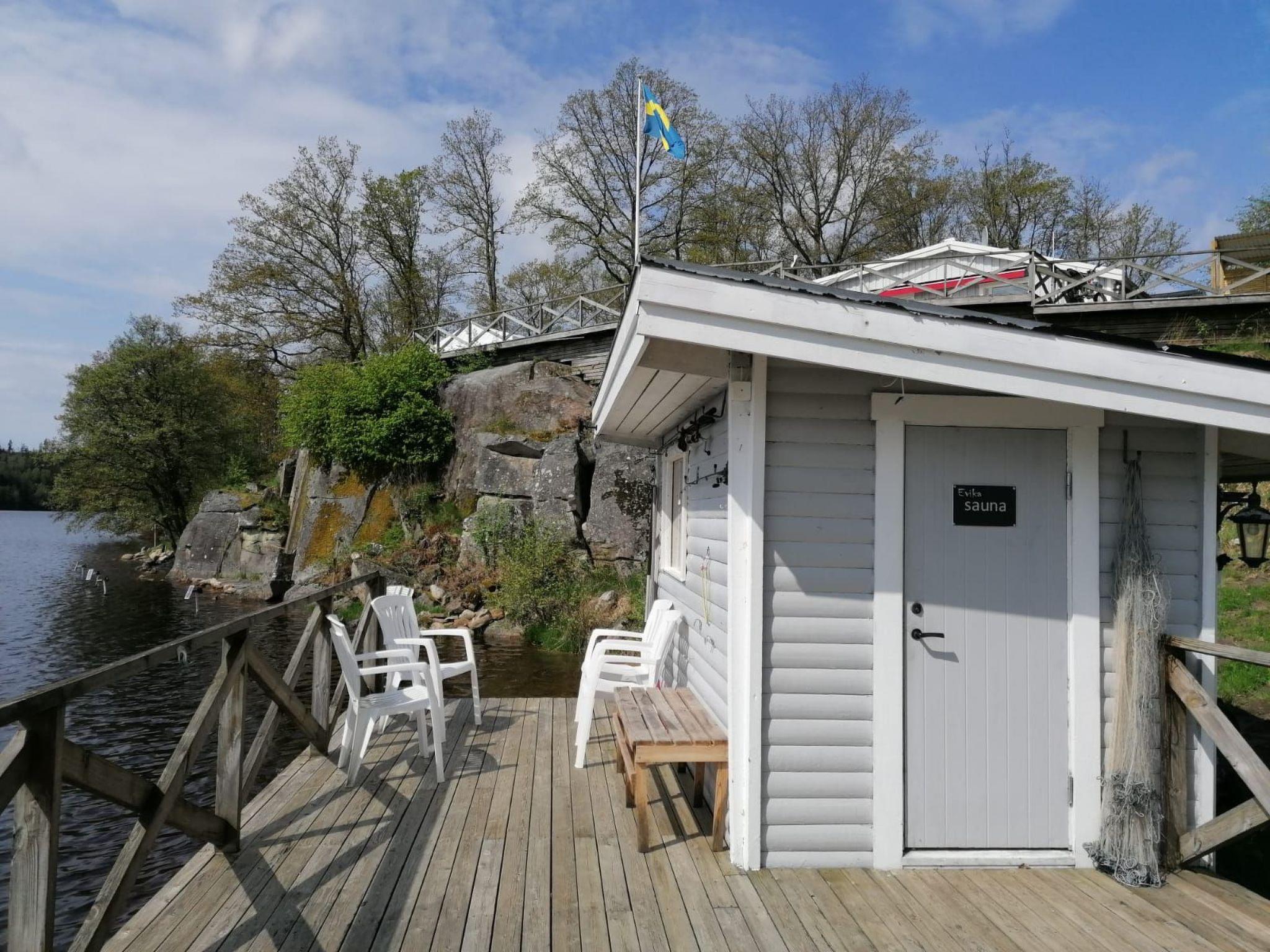 Sie wohnen in einem privaten Ferienhaus am Ufer eines Sees zwischen Göteborg und dem Flughafen Landvetter, umgeben von unberührten Kiefernwäldern.