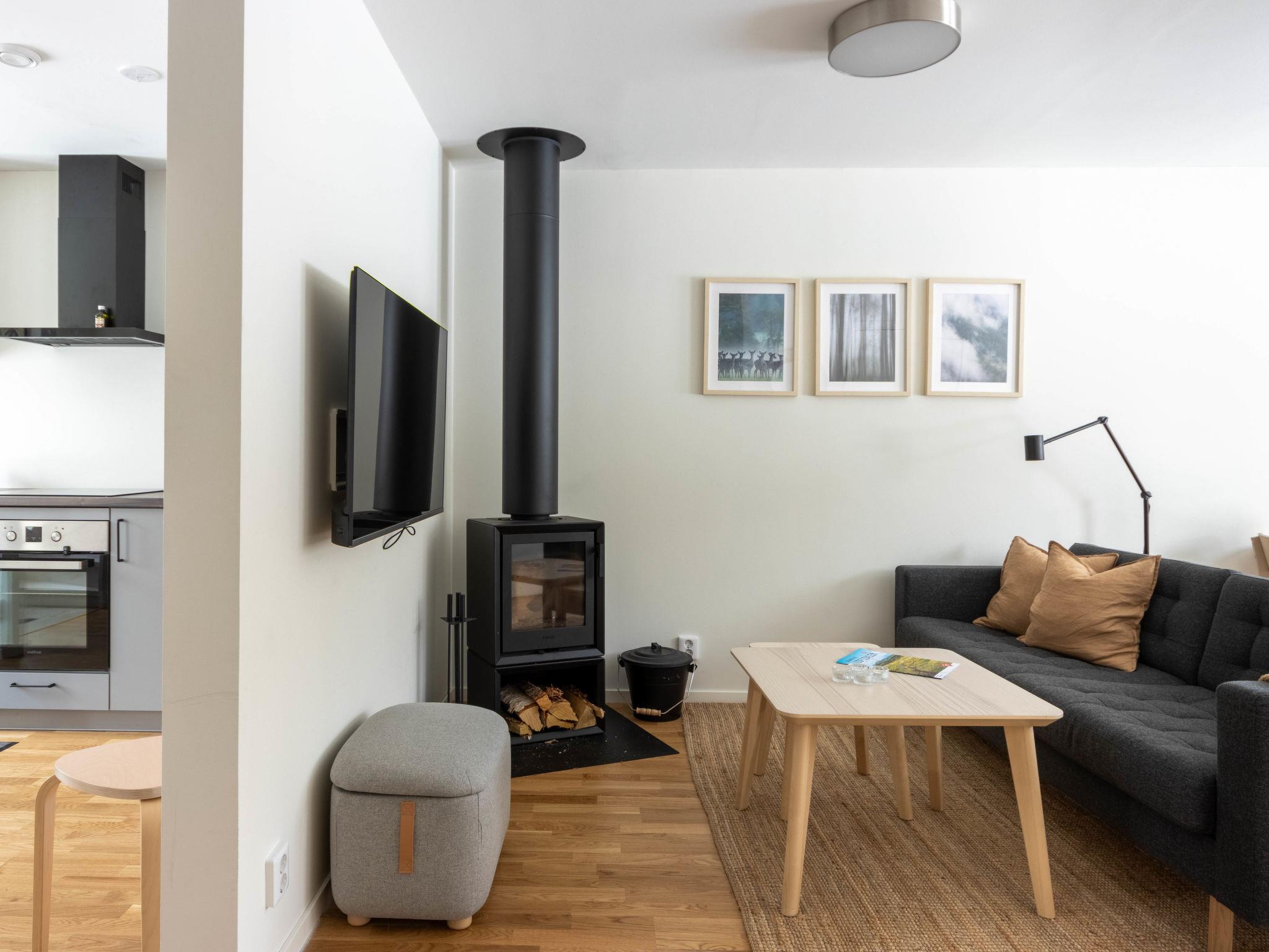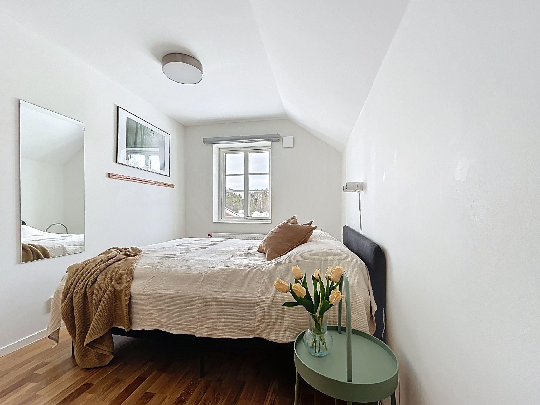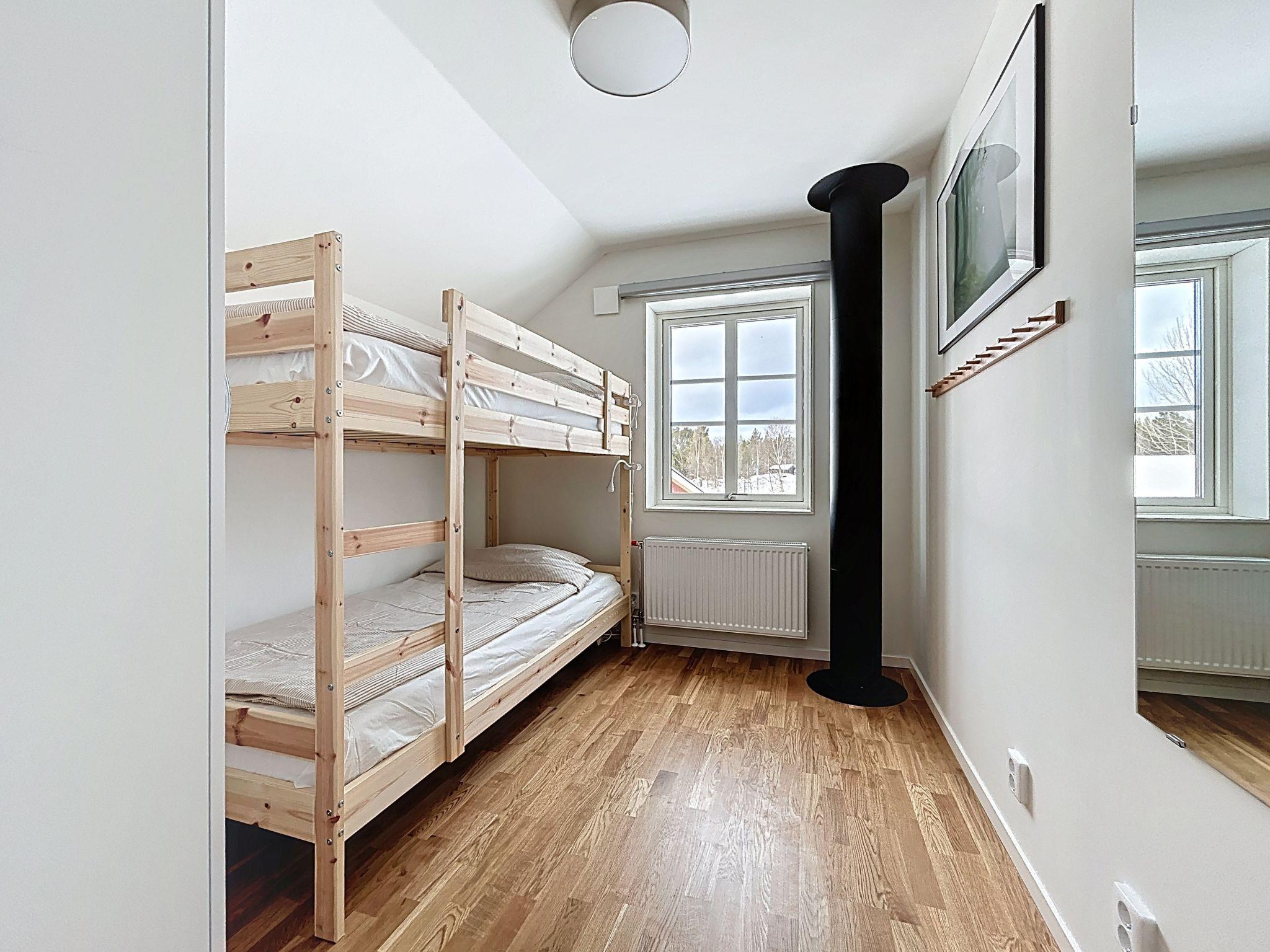 "Norra Svanhågna Gård", 4-Zimmer-Wohnung 87 m2 auf 2 Stockwerken. Einfach und modern eingerichtet: offenes Wohn-/Esszimmer mit Schwedenofen, Esstisch und TV. Ausgang zur Veranda. 1 Zimmer mit 1 Doppelbett (180 cm, Länge 200 cm). Küche (Backofen, Geschirrspüler, 4 Induktionskochplatten, Toaster, Wasserkocher, Mikrowelle, Tiefkühler, elektrische Kaffeemaschine). Dusche/WC, Sauna. Heizung, Holzheizung. Obergeschoss: 1 Zimmer mit 1 x 2 Etagenbetten (90 cm, Länge 200 cm). 1 Zimmer mit 1 x 2 Etagenbetten (90 cm, Länge 200 cm), 1 Doppelbett (180 cm, Länge 200 cm). Dusche/WC. Parkettboden. Terrasse 20 m2. Sitzplatz. Eingeschränkte auf den See, die Berge und das Tal. Zur Verfügung: Waschmaschine, Wäschetrockner, Kinderhochstuhl, Babybett. Internet (WLAN, gratis). Bitte beachten: Nichtraucher-Haus. Rauchmelder.