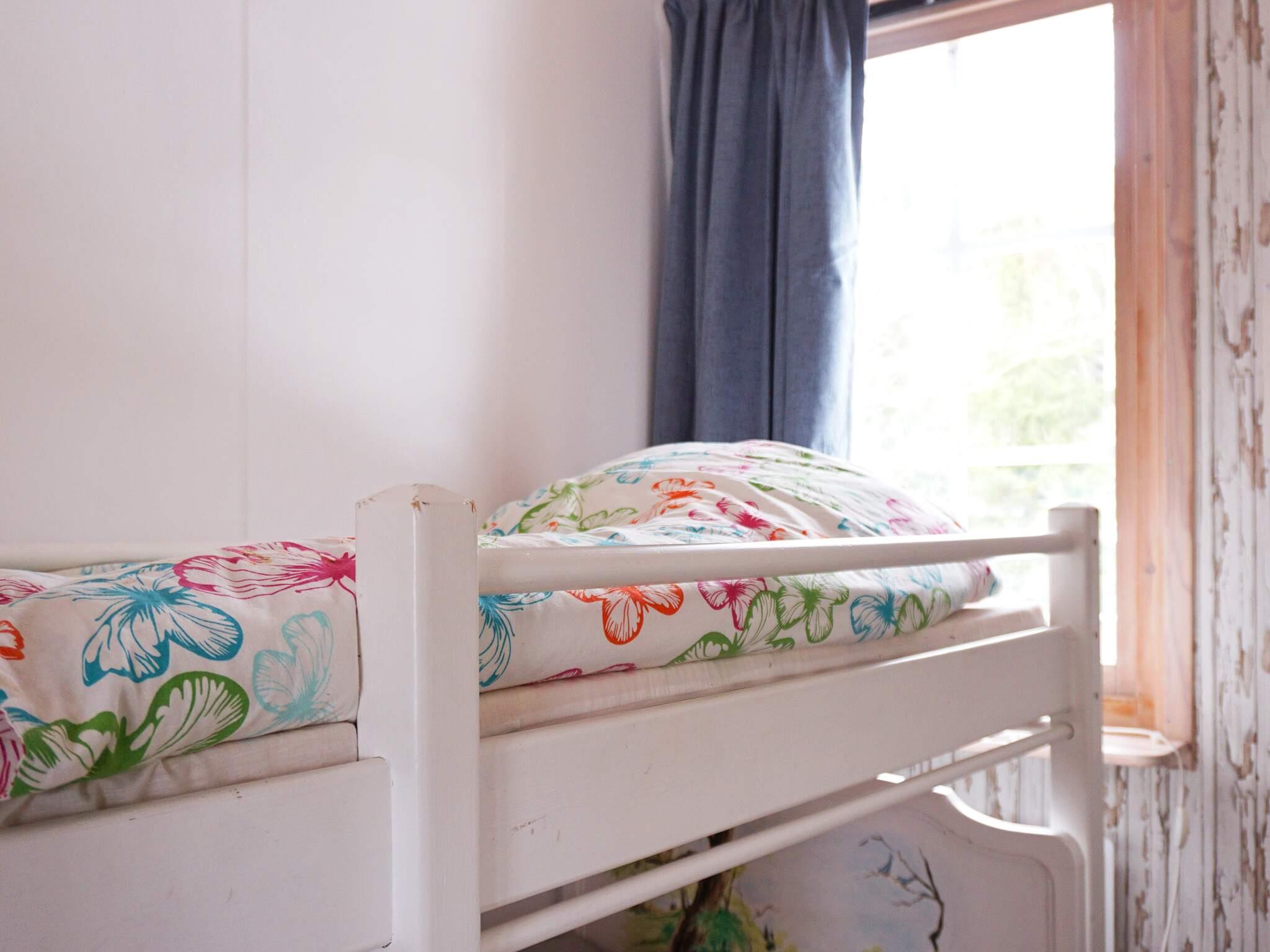 Das Haus verfügt über drei Schlafzimmer, eines mit Doppelbett und eines mit Einzelbett, sowie ein Kinderschlafzimmer mit einem kleinen Etagenbett (80x160 + 70x110 cm). Das Haus ist ideal für 3 Erwachsene und 2 kleine Kinder, die sich das Etagenbett teilen können. Perfekt für die Familie!