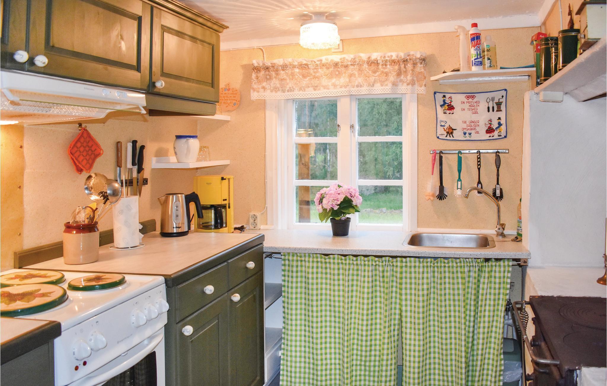 Genießen Sie die Ruhe in diesem charmanten Ferienhaus nahe Eksjö und Nässjö. Die idyllische Umgebung mit Pferde- und Schafweiden sowie die Natur direkt vor der Haustür bieten eine schöne Kulisse für erholsame Tage mit der Familie. Auch Haustiere sind hier herzlich willkommen. Freuen Sie sich auf den gemütlichen Wohnbereich des Hauses im klassischen Schwedenstil. Die liebevoll eingerichteten Räume mit traditionellen Möbeln und warmen Farben laden zum Verweilen ein. Die Küche ist funktional ausgestattet und ermöglicht die Zubereitung einfacher Mahlzeiten. Die niedrige Decke im Obergeschoss verleiht dem Haus seinen rustikalen Charme.