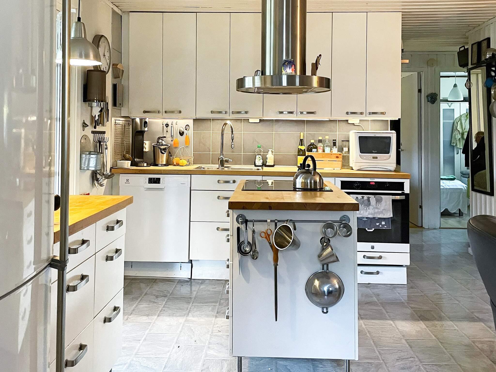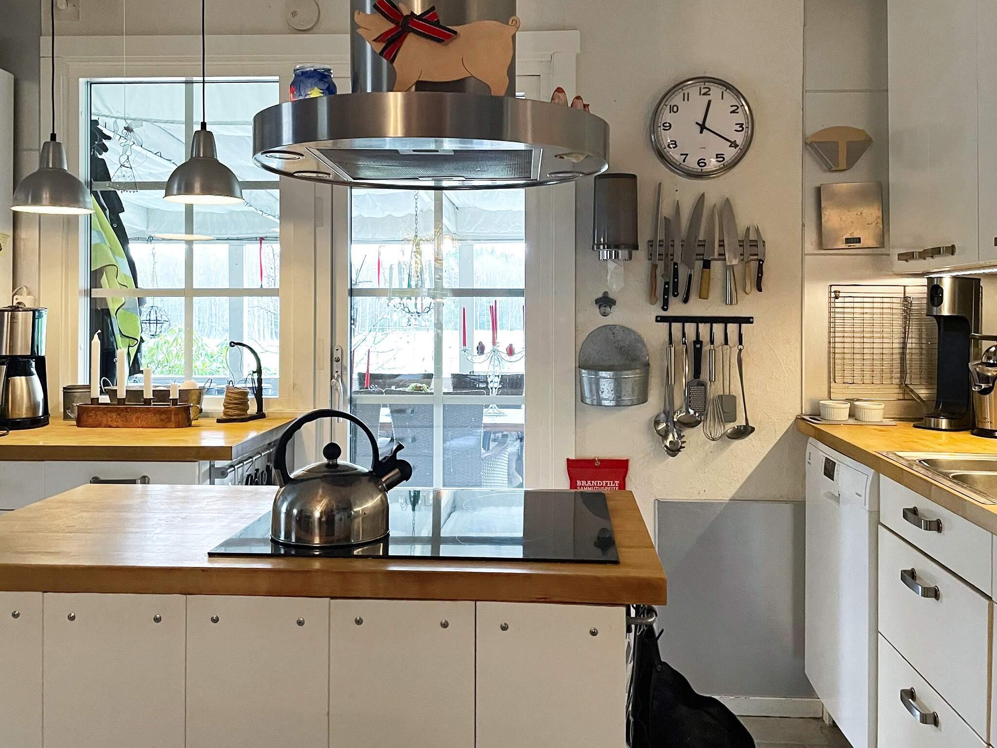 Das Ferienhaus ist 60 m² groß und verfügt über einen offenen Grundriss mit einem modernen Küchenbereich mit Geschirrspüler, Induktionskochfeld und selbstreinigendem Backofen. Der Wohnbereich verfügt über einen geräumigen Essbereich, ein bequemes Sofa und einen Herd. Brennholz ist in begrenzten Mengen verfügbar. Sie können über Chromecast fernsehen.