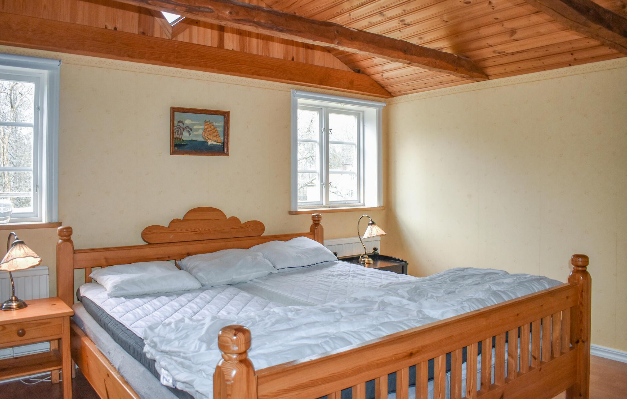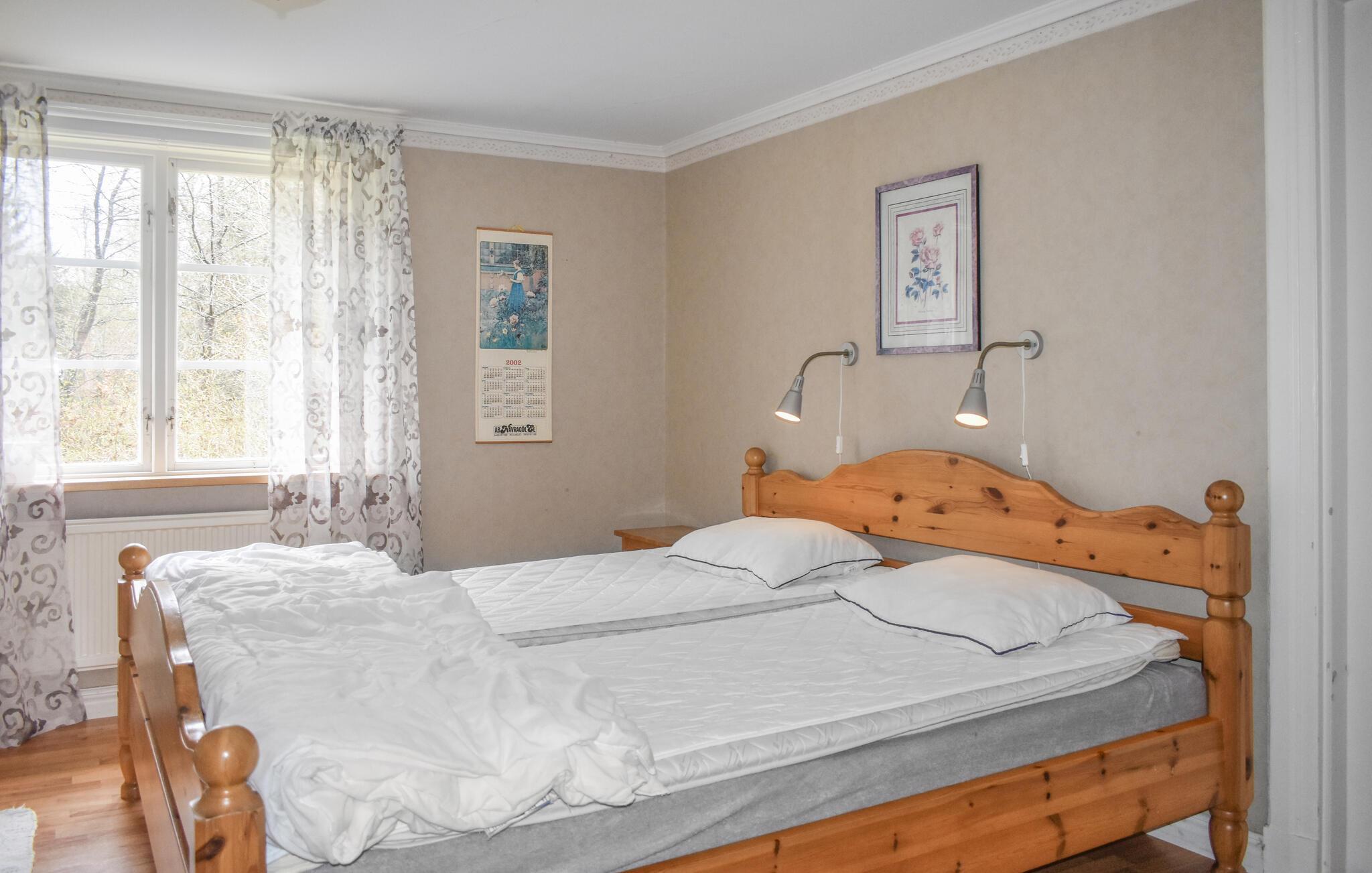 Geräumiges Ferienhaus in ruhiger Lage im Wald östlich von Holmsjö und Nävragöl. Hier gibt es genügend Schlafmöglichkeiten, so dass eine etwas größere Reisegesellschaft zusammen Urlaub machen kann. Sie wohnen in einer natürlichen Umgebung im Norden von Blekinge, in der Wälder und Grünflächen die Umgebung charakterisieren. Nehmen Sie den schönen Fußweg zum Fluss, wo das Boot zu Ihrer Verfügung steht. Wenn Sie während Ihres Urlaubs schwimmen möchten, gibt es eine schöne Badestelle ca. 10 km vom Ferienhaus entfernt. Zum Baden im Meer können Sie einen Tagesausflug nach Süden nach Karlskrona unternehmen. Es gibt auch viele Möglichkeiten und Aktivitäten für Jung und Alt.