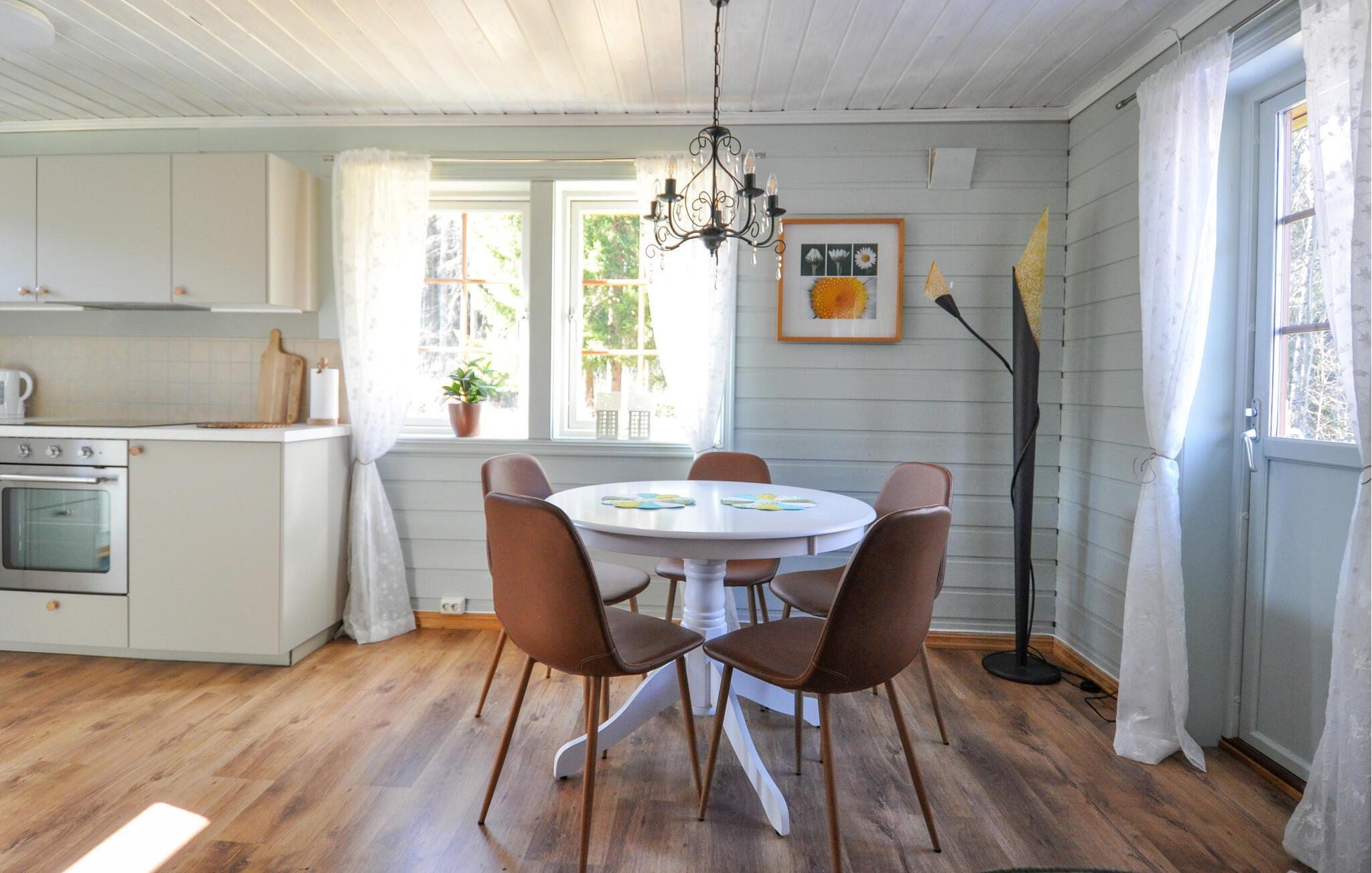 Entfliehen Sie dem Alltag und fühlen Sie sich in diesem behaglichen Urlaubsdomizil wie zu Hause. Kochen Sie leckere Mahlzeiten in der modernen Küche und nehmen Sie am einladenden Esstisch Platz. Nach einem langen Tag an der frischen Luft können Sie den Kaminofen entfachen und harmonische Abende im gemütlichen Wohnzimmer genießen. Entspannen Sie bei einem Brettspiel oder vertiefen Sie sich in ein gutes Buch.