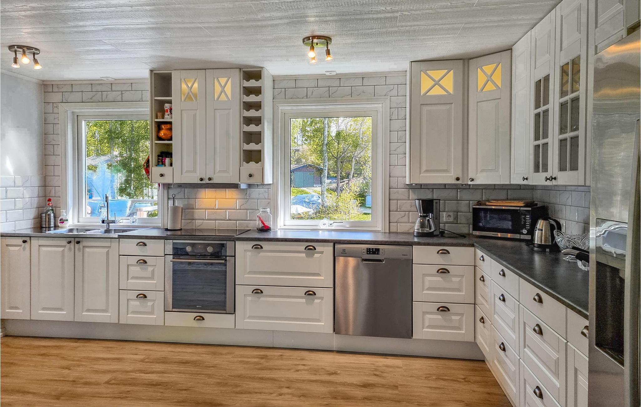 Wohnen Sie in schöner Lage dicht am Wald, nur 600 Meter von dem See Vänern entfernt. Das Ferienhaus ist mit seinen niedlichen Details, seiner gemütlichen Einrichtung und seinem schönen Garten voller Charakter. Beim Eintreten fällt Ihnen sofort die sehr große Essküche auf, die zum gemeinsamen Kochen einlädt. Hier können Sie Ihre Lieblingsgerichte zubereiten oder vielleicht veranstalten Sie sogar einen Kochwettbewerb? Genießen Sie ein ausgedehntes Frühstück und planen Sie Ihre Aktivitäten für den Tag. Vergessen Sie nicht, Brettspiele mitzubringen. Das kuschelige Ecksofa lockt mit Entspannung für müde Füße. Genießen Sie es, nicht früh aufstehen zu müssen, und verbringen Sie lange Grillabende auf der Terrasse.