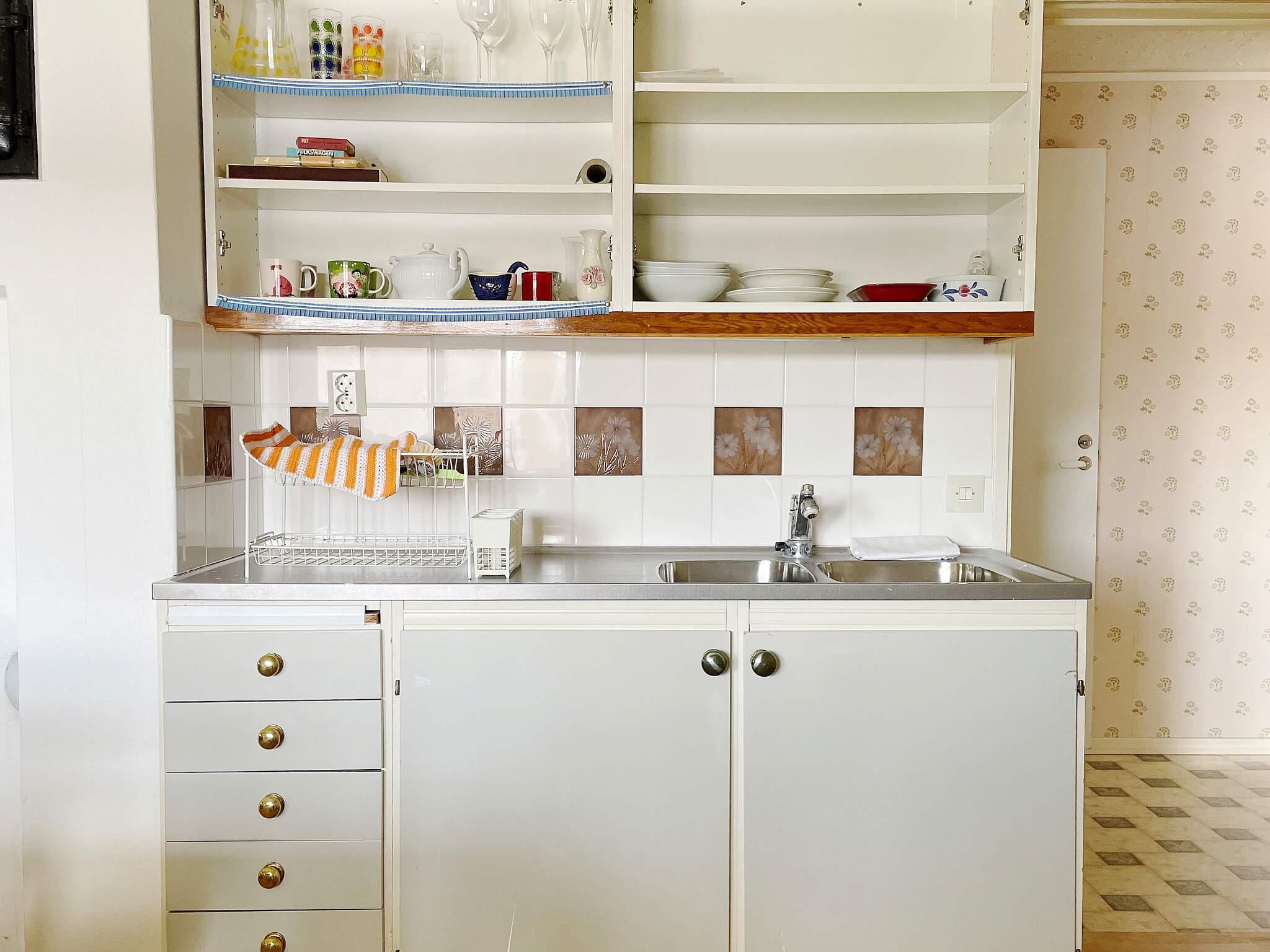 Ein sehr schönes Ferienhaus auf zwei Etagen und einer schönen Terrasse, herrlichem Seeblick und, was das Beste ist, einem privaten Steg! Das Ferienhaus empfängt Sie mit einem geräumigen Flur, der in das Wohnzimmer und die Küche mit offenem Grundriss führt. Das Wohnzimmer verfügt über ein Schlafsofa für zwei Personen. Die großzügige Küche verfügt über eine Kücheninsel, einen Backofen und eine Mikrowelle in angenehmer Arbeitshöhe. Betreten Sie die Veranda für Mahlzeiten und entspannte Momente mit Blick auf den See! Im Erdgeschoss befinden sich außerdem ein Schlafzimmer mit Doppelbett und ein Badezimmer mit Dusche und WC.