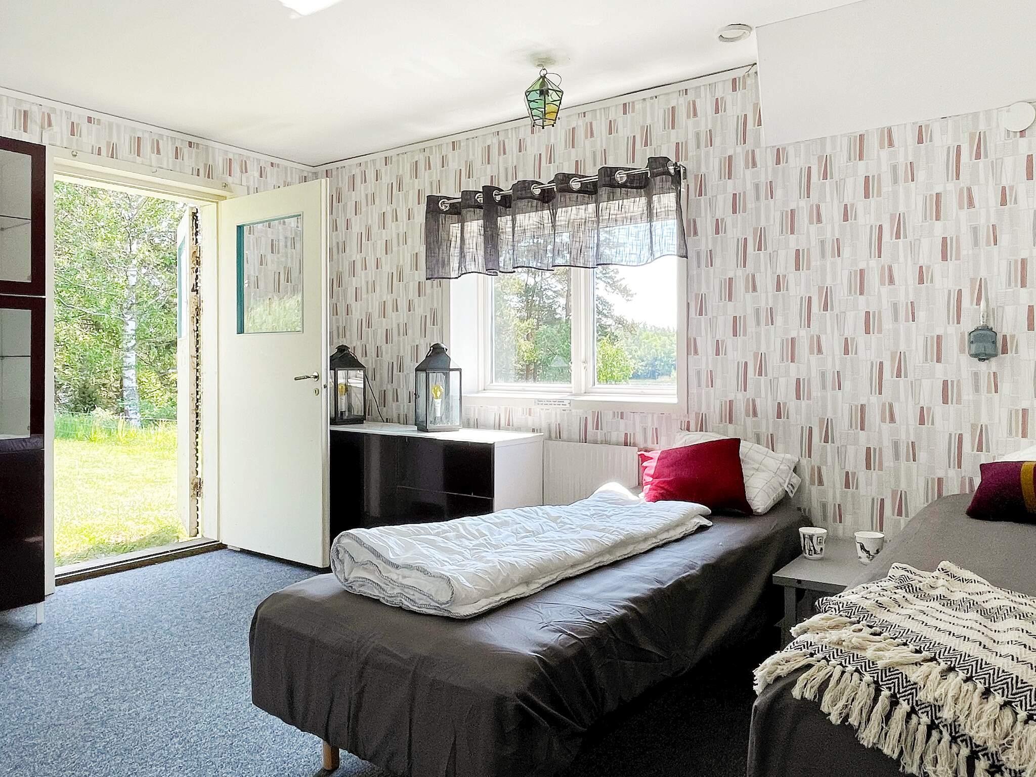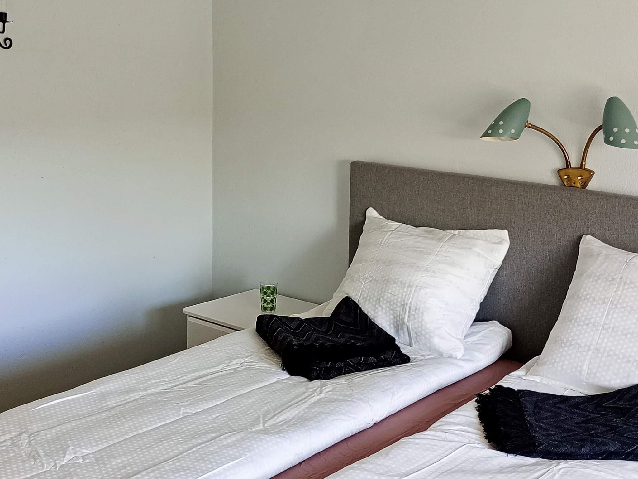 Eine Treppe weiter unten befindet sich die Sauna, die nach einem Bad im See zu einem warmen Saunabad einlädt! Die Sauna befindet sich im Badezimmer, das auch über Dusche, Toilette, Waschmaschine und Wäschetrockner verfügt. Auf dieser Etage im Souterrain liegen auch zwei weitere Schlafzimmer; eines mit zwei Einzelbetten und direktem Zugang zum schönen Rasen und in praktischer Entfernung zum Steg, wo Sie morgens schwimmen gehen können! Das andere Schlafzimmer verfügt über ein bequemes Doppelbett. Außerdem gibt es ein Familienzimmer mit einer Küchenzeile und Kochmöglichkeiten auf Wunsch mit tragbaren Kochplatten sowie einer gemütlichen Sitzecke. Perfekt mit zwei Ebenen, die auf Wunsch etwas Privatsphäre bieten!