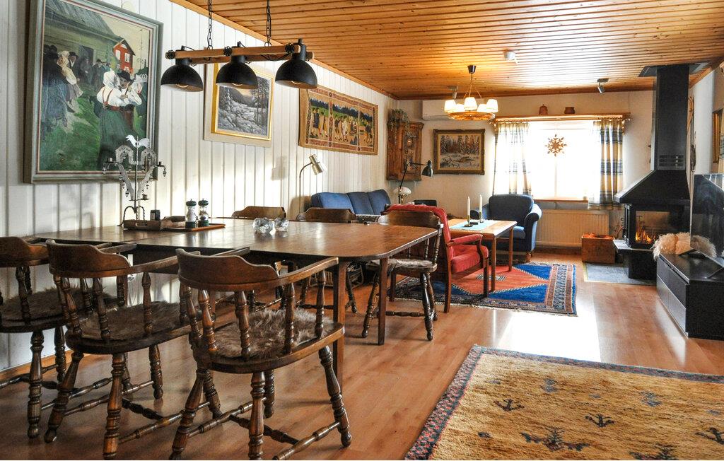 Erleben Sie entspannte Tage in diesem Ferienhaus in Sälen, das Gemütlichkeit und rustikalen Charme vereint. Ganz gleich, ob im Sommer oder Winter, dieses Ferienhaus bietet den idealen Urlaubsort für Naturliebhaber und Aktivurlauber gleichermaßen. Der großzügige Wohnbereich ist mit gemütlichen Sofas, traditionellen Holzmöbeln und einem einladenden Kaminofen ausgestattet. Lassen Sie sich von der warmen Atmosphäre verzaubern und genießen Sie gesellige Abende mit Spielen oder einem guten Buch. Der große Esstisch bietet Platz für gemeinsame Mahlzeiten, die Sie in der gemütlichen Küche zubereiten können. Hier wird das Kochen zum Vergnügen.