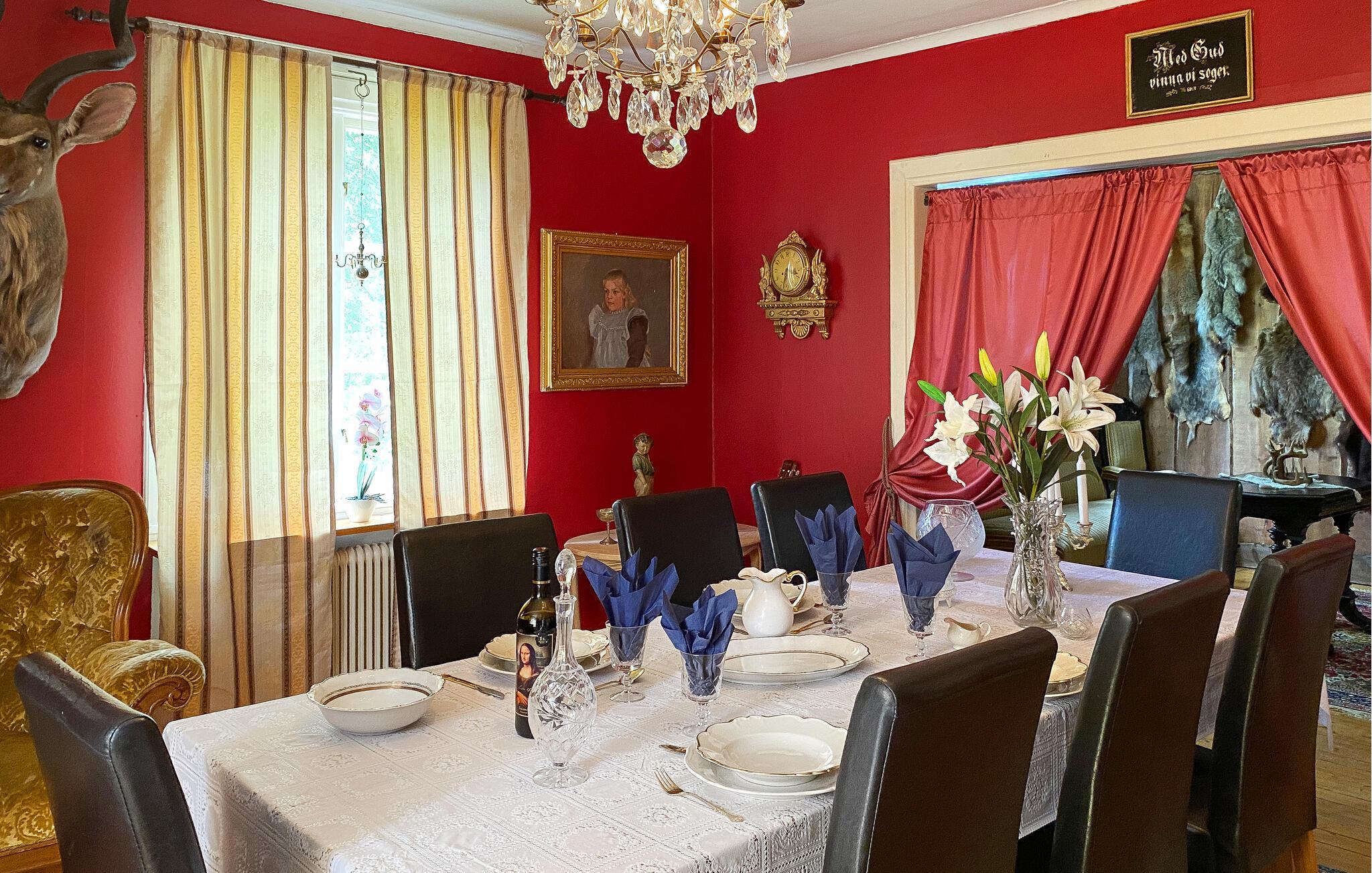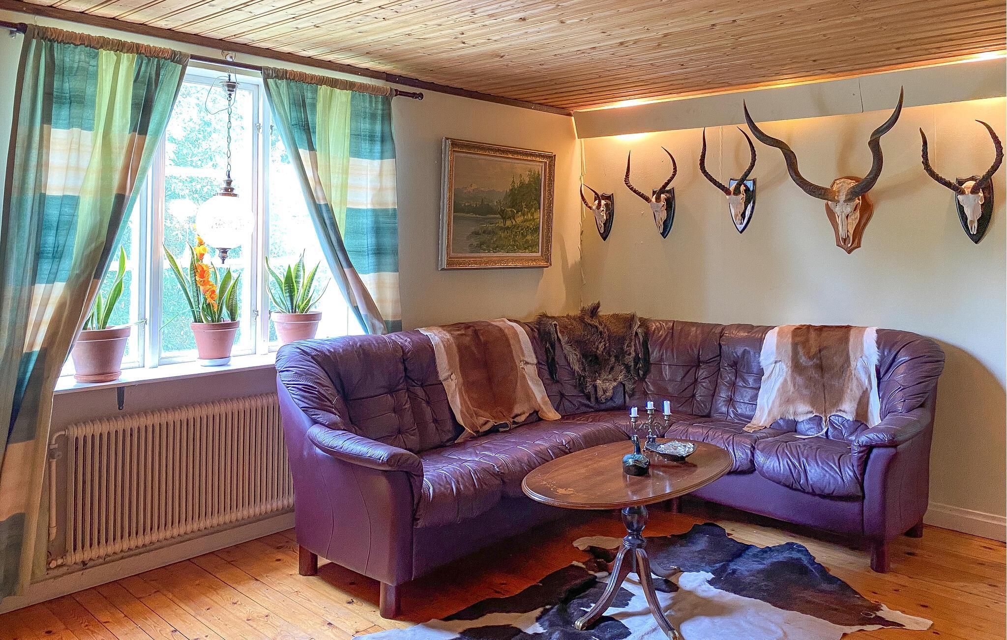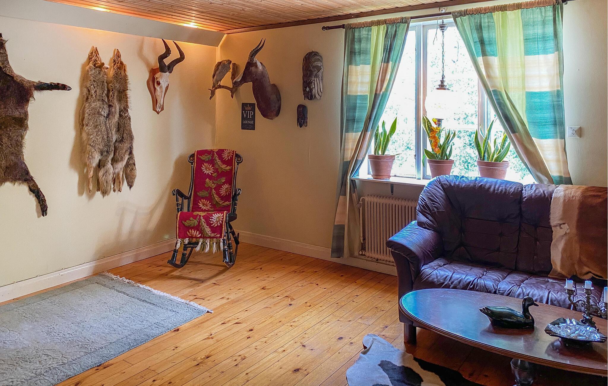 Erleben Sie das rustikale Flair dieses einzigartigen Ferienhauses in Sävsjö. Die Innenräume, geprägt von kräftigen Farben und zahlreichen Jägertrophäen, strahlen eine gemütliche und urige Atmosphäre aus. Auf zwei Etagen finden Sie hier alles vor, um Ihren unbeschwerten Urlaub zu genießen und sich zu entspannen.