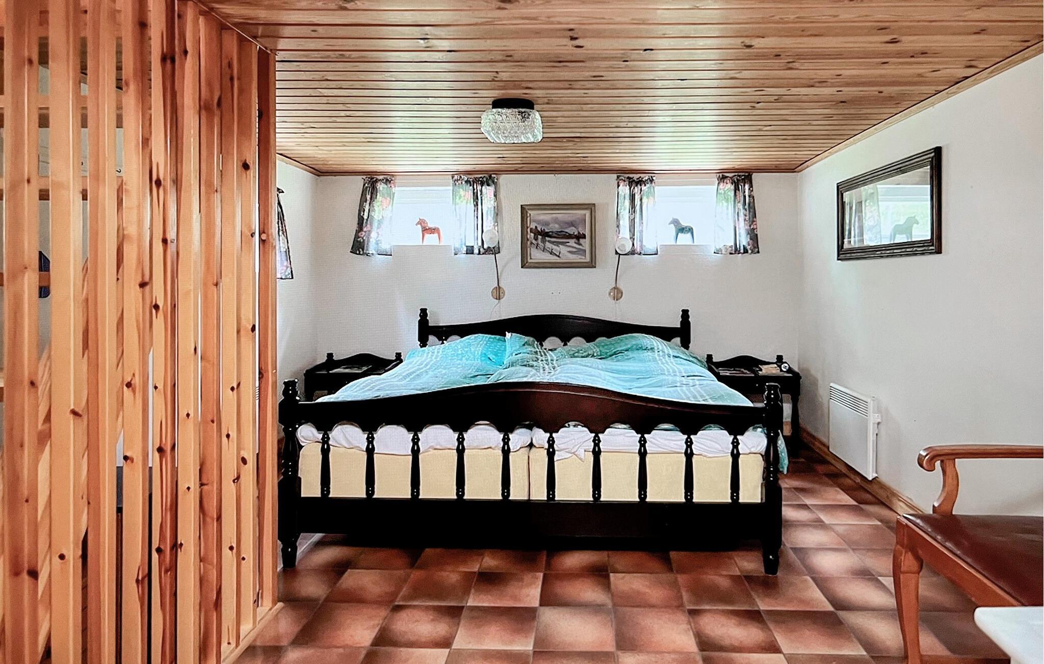 Dieses einladende Ferienhaus bietet die Gelegenheit, umgeben von der Schönheit der schwedischen Natur zur Ruhe zu kommen. Mit seiner idyllischen Lage in der Nähe des Sees Vallsjön lädt es zu entspannten Tagen und spannenden Entdeckungstouren ein. Der Innenbereich des Hauses wartet mit rustikalem Charme und einer gemütlichen Einrichtung auf. Der Wohnbereich ist mit bequemen Sitzmöbeln ausgestattet und wird durch warme Holzelemente unterstrichen. Die offene Küche bietet alles, was Sie zur Zubereitung köstlicher Mahlzeiten benötigen, während der angrenzende Essbereich mit der langen Sitzbank und den großen Fenstern eine helle und einladende Atmosphäre schafft. Verbringen Sie entspannte Abende bei einem guten Buch oder genießen Sie Gesellschaftsspiele mit Ihrer Familie.