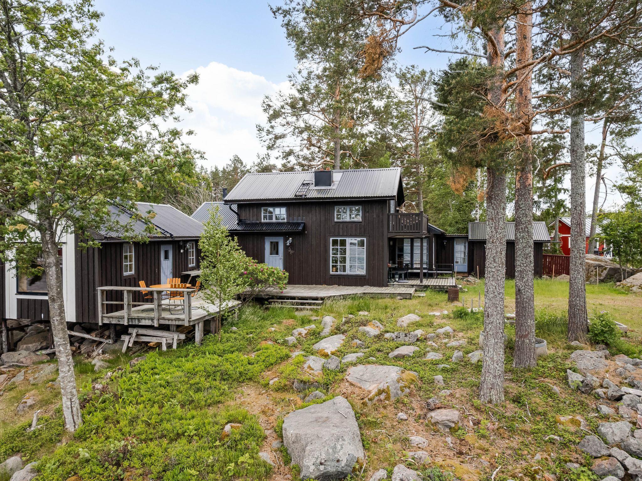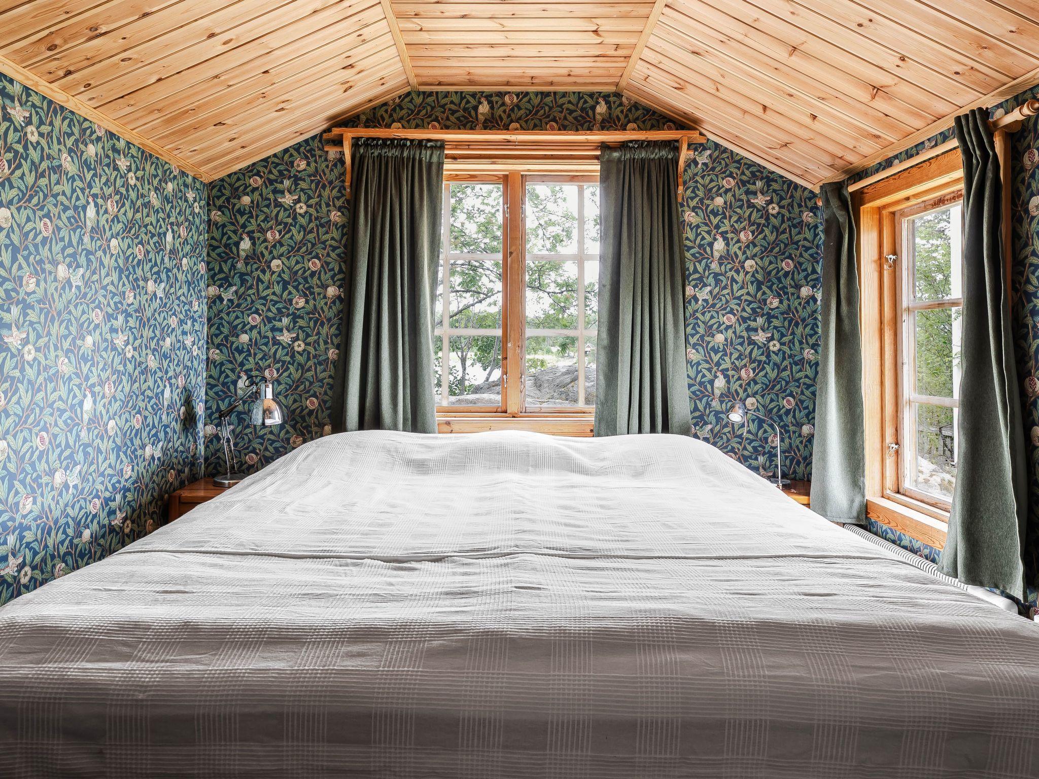 "Huset på Udden", 6-Zimmer-Haus. Komfortabel und geschmackvoll eingerichtet: offenes grosses Wohn-/Esszimmer mit Schwedenofen und Esstisch. 1 Doppelzimmer mit 1 Doppelbett (180 cm, Länge 200 cm). 1 Zimmer mit 1 x 1 Etagenbetten (90 cm, Länge 200 cm) (90 cm, Länge 200 cm), Dusche/WC. Offene Küche im Eingang (Backofen, Geschirrspüler, 4 Glaskeramikplatten, Toaster, Wasserkocher, Mikrowelle, Tiefkühler, Grill, elektrische Kaffeemaschine). Dusche/WC, Sauna. Heizung. Obergeschoss: 1 Kinderzimmer mit 1 Bett (90 cm, Länge 200 cm). 1 Zimmer mit Veranda mit 1 Bett (90 cm, Länge 200 cm). Holzdielenboden. Grosse Terrasse. Terrassenmöbel, Gartengrill (mobil). Sehr schöne Panoramasicht auf das Meer und den Wald. Zur Verfügung: Waschmaschine. Internet (WLAN). Bitte beachten: Nichtraucher-Haus. Rauchmelder, Feuerlöscher.