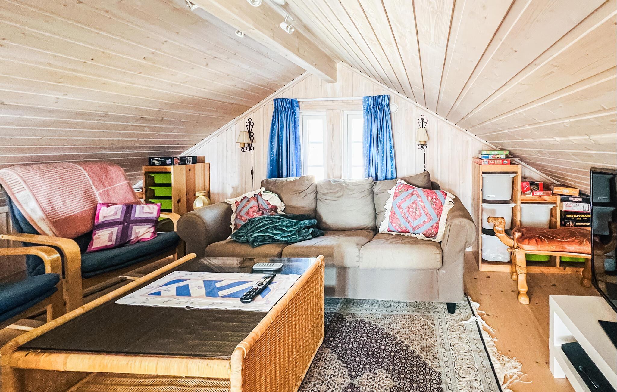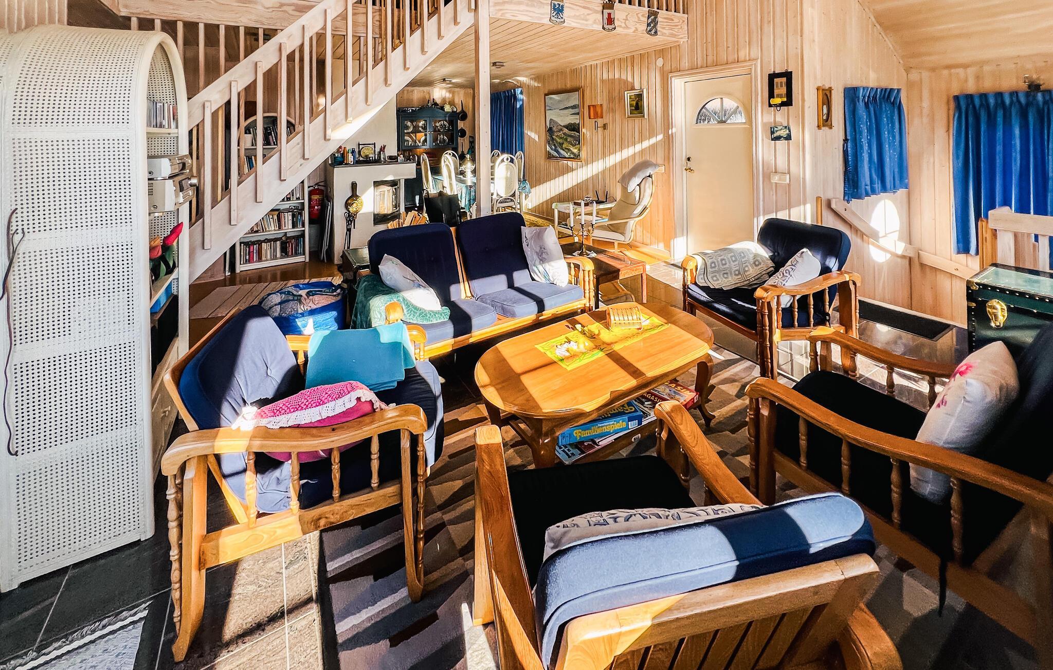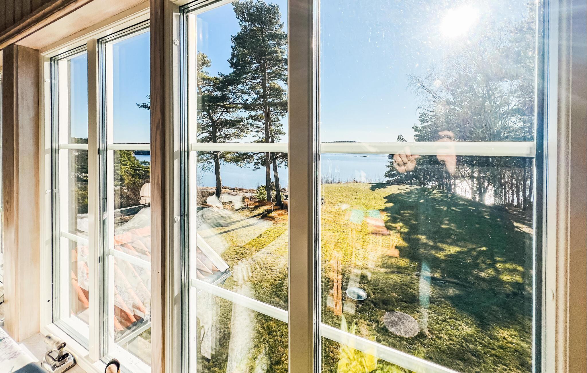 Erleben Sie die schwedische Schärenlandschaft in ihrer schönsten Form. Dieses charmante Ferienhaus in Hanglage bietet Ihnen einen fantastischen Ausblick auf das Meer und die umliegende Inselwelt. Genießen Sie absolute Ruhe, frische Luft und weite Blicke in alle Richtungen. Im liebevoll gestalteten Wohnzimmer erwarten Sie eine große Fensterfront und mehrere gemütliche Sitzplätze. Entspannen Sie sich hier mit einem Buch oder lassen Sie den Abend gemeinsam mit Gesprächen und Spielen ausklingen. Der große Esstisch lädt zu langen, leckeren Mahlzeiten ein, während der Kaminofen an kühlen Tagen wohlige Wärme spendet.