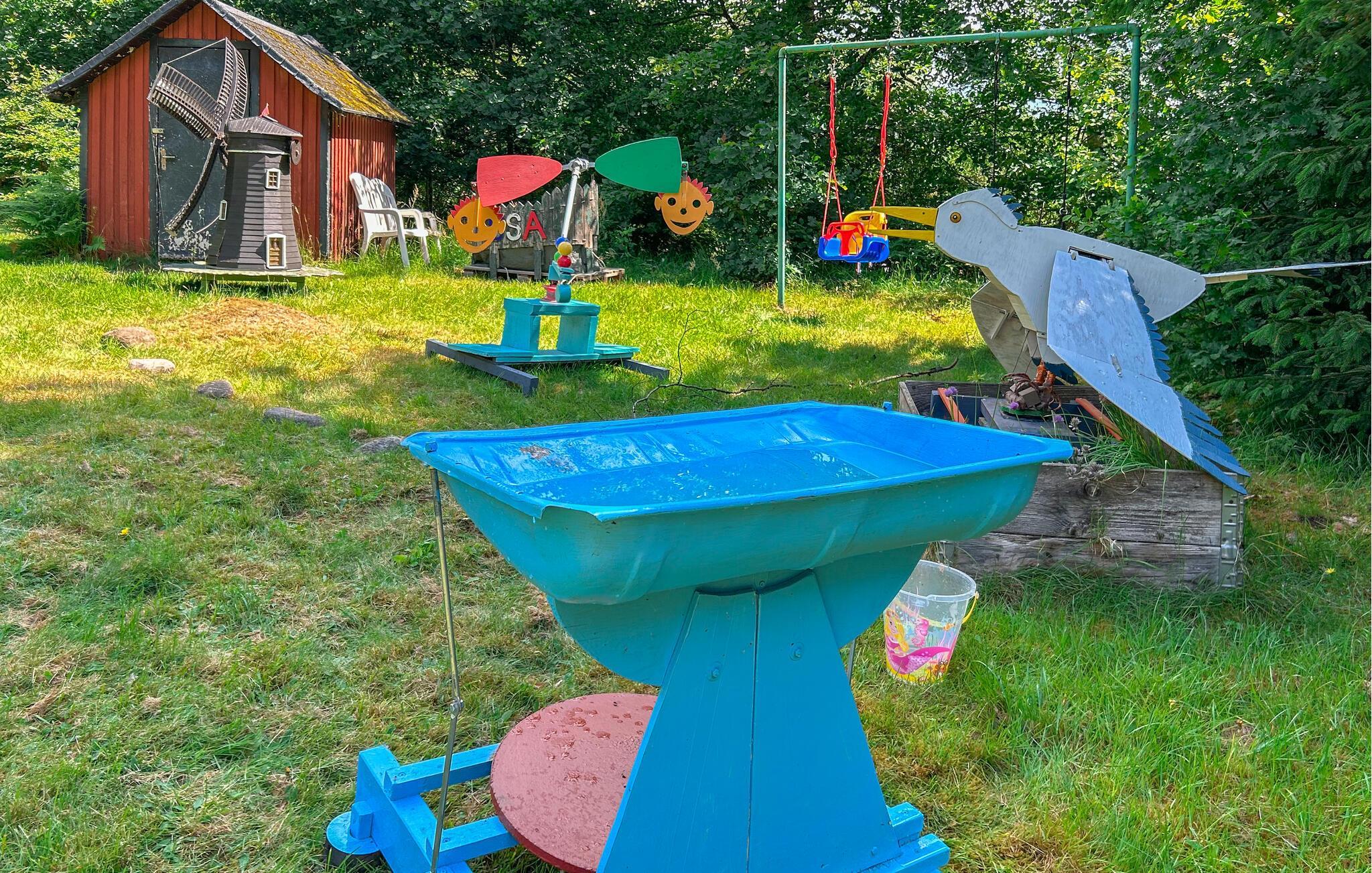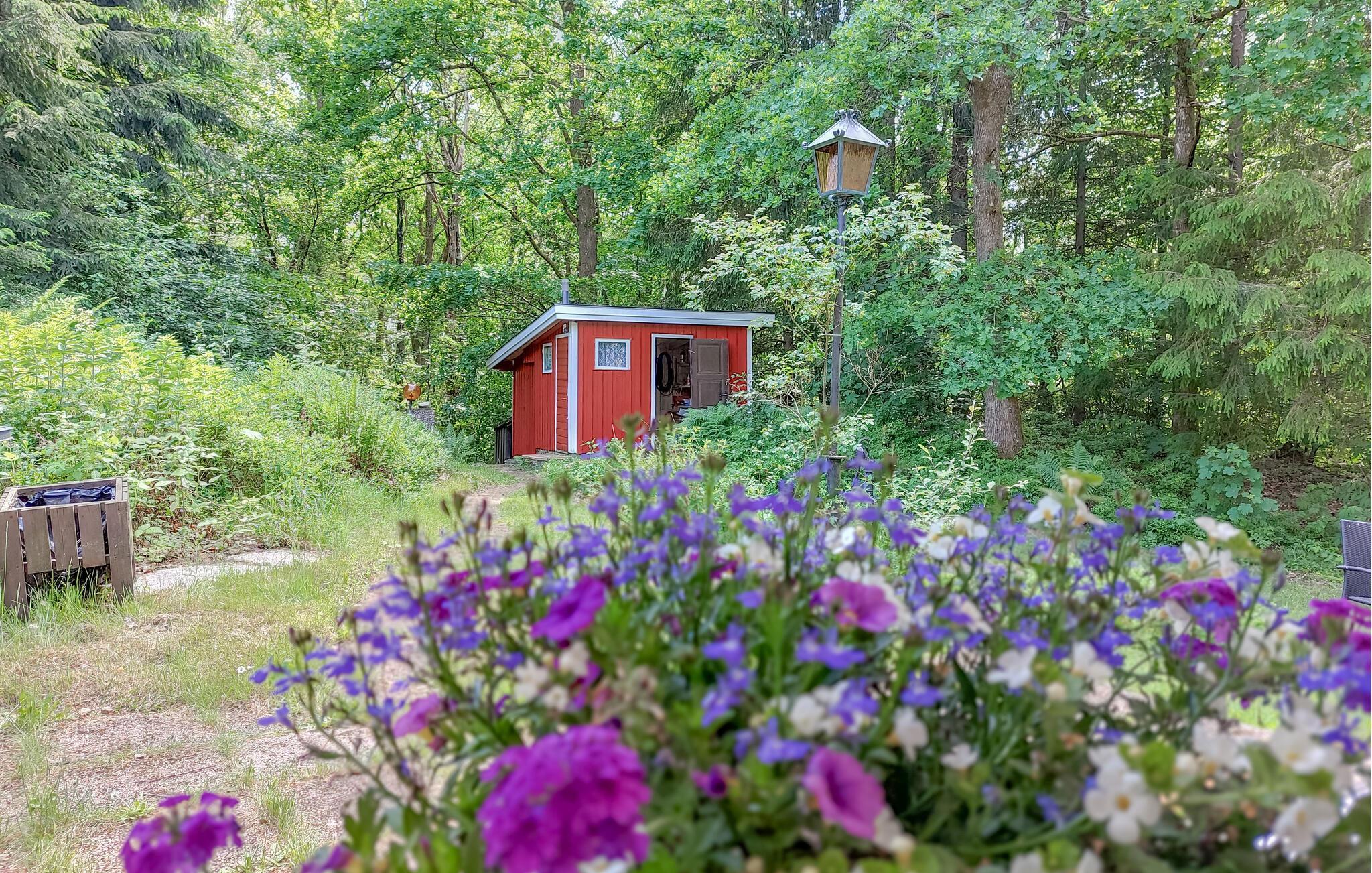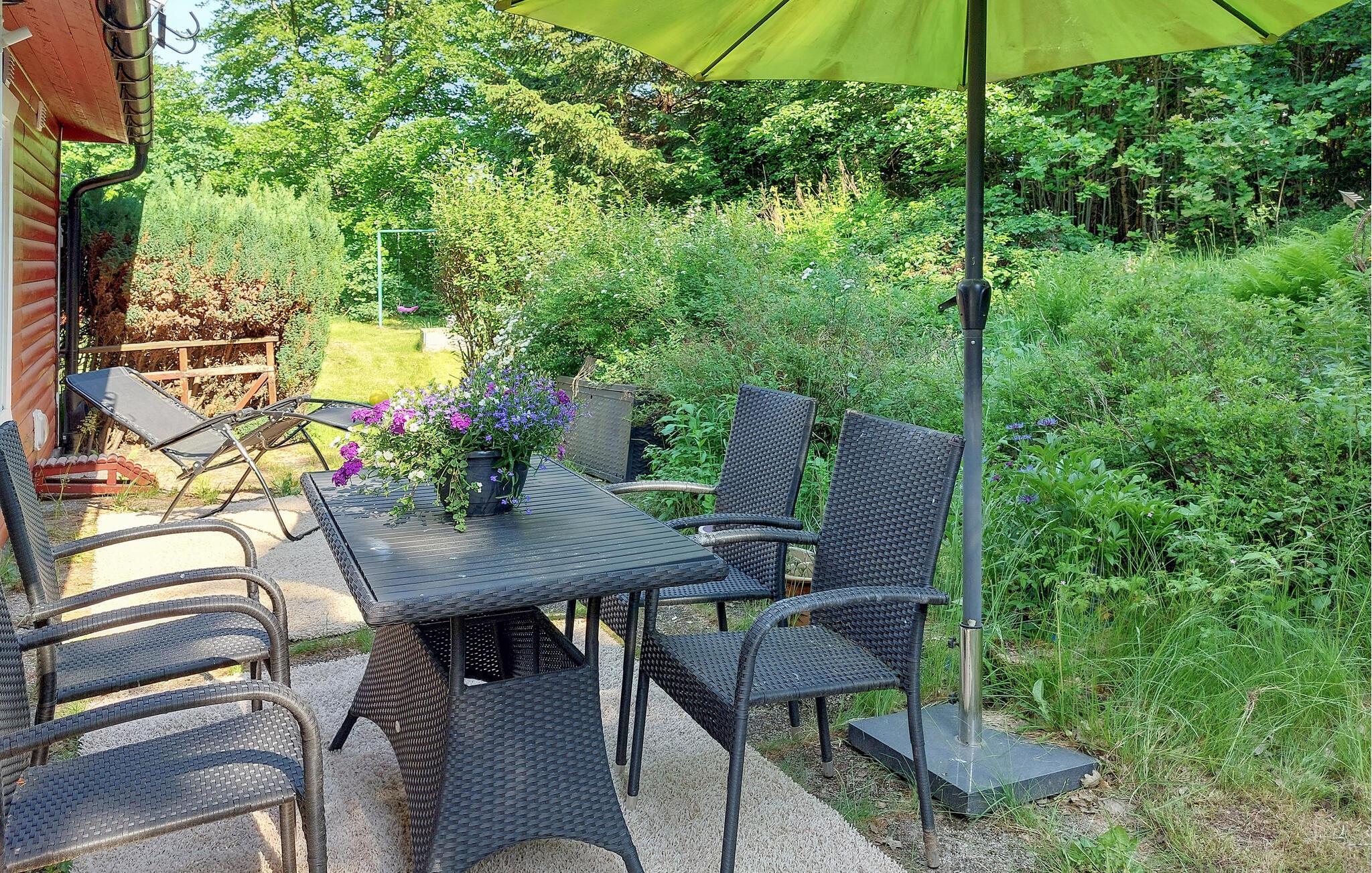 Ihr Ferienhaus liegt in unmittelbarer Nähe des Waldes und ist von einem großen Grundstück umgeben, das ideal für Familien mit Kindern ist. Hier finden die Kleinen ein Spielhaus und Schaukeln, während rund um das Grundstück wilde Blaubeeren und Himbeeren wachsen, die zum Pflücken einladen. Die geschützte Terrasse und der überdachte Außenbereich mit bequemen Möbeln und einem Grill sind ideal für lange, entspannte Sommerabende. Hier können Sie nach einem Tag voller Aktivitäten die Ruhe und Schönheit der Umgebung genießen.