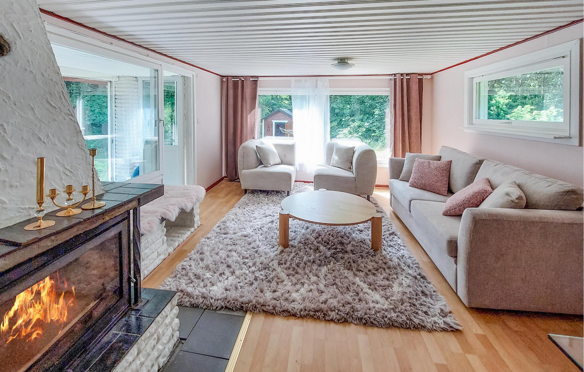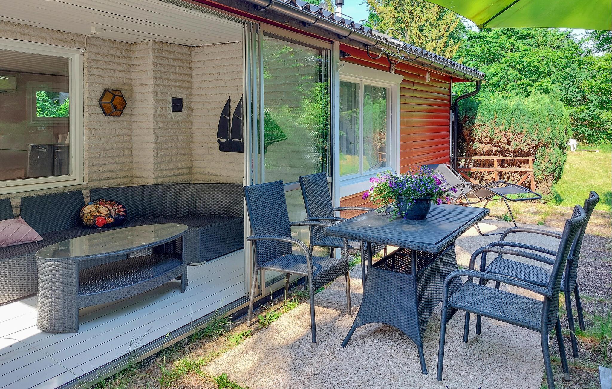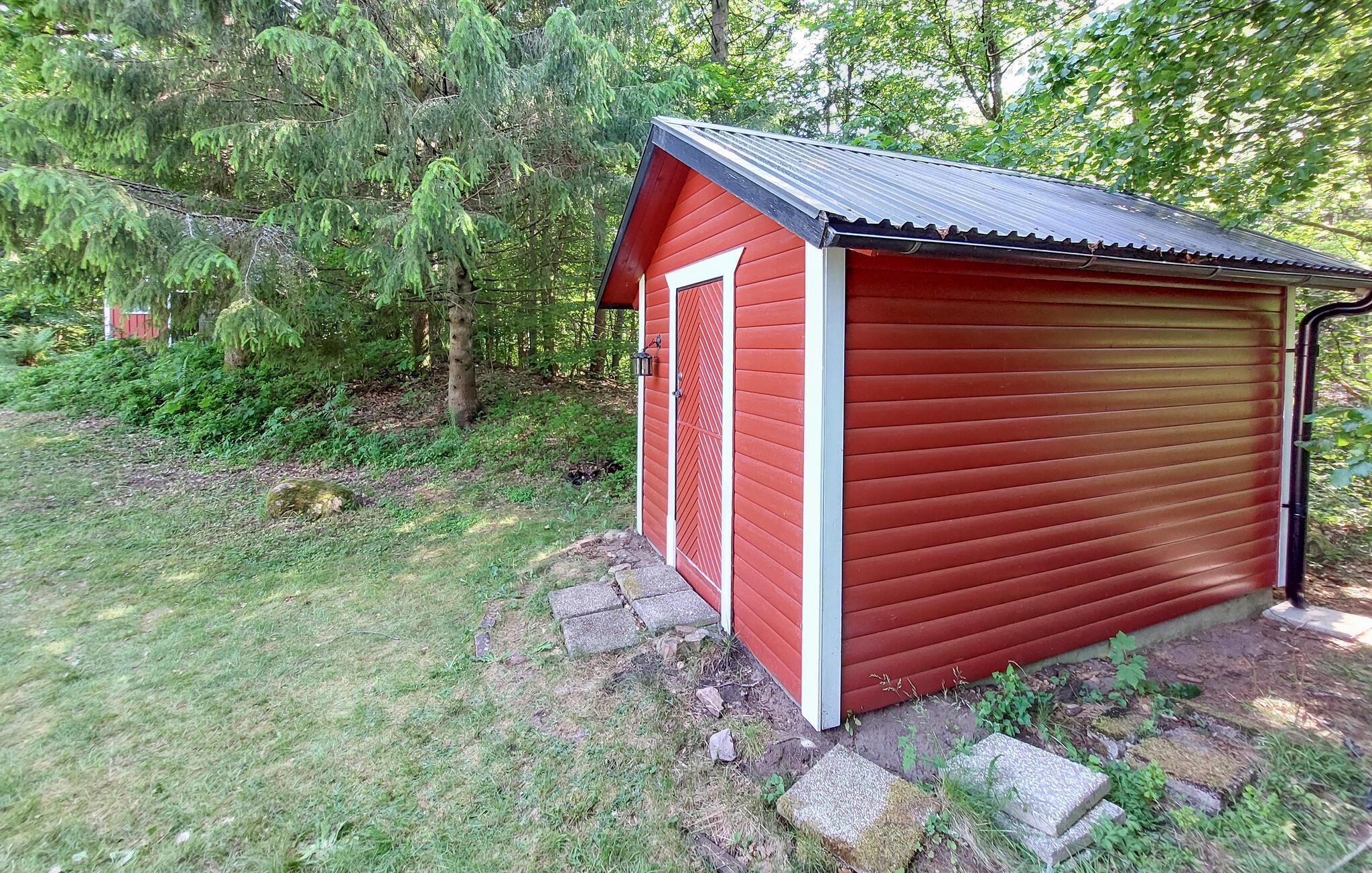 Ihr Ferienhaus liegt in unmittelbarer Nähe des Waldes und ist von einem großen Grundstück umgeben, das ideal für Familien mit Kindern ist. Hier finden die Kleinen ein Spielhaus und Schaukeln, während rund um das Grundstück wilde Blaubeeren und Himbeeren wachsen, die zum Pflücken einladen. Die geschützte Terrasse und der überdachte Außenbereich mit bequemen Möbeln und einem Grill sind ideal für lange, entspannte Sommerabende. Hier können Sie nach einem Tag voller Aktivitäten die Ruhe und Schönheit der Umgebung genießen.