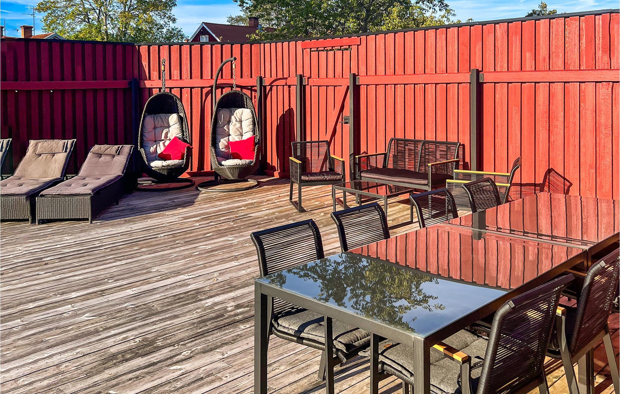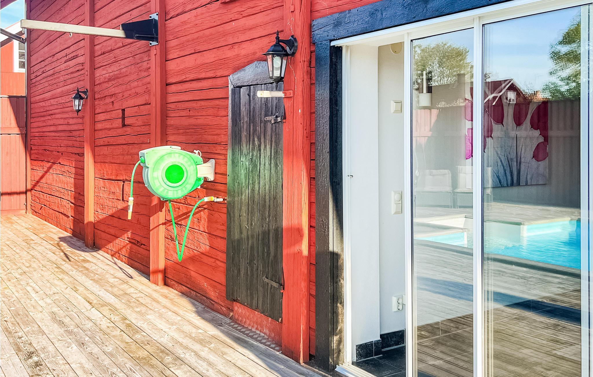 Willkommen in Södra Vi und dieser von schöner Natur umgebenen Wohnung in fußläufiger Entfernung zum Krönsee. Die gemütliche, helle Unterkunft auf einem riesigen gemeinsamen Grundstück ist gut ausgestattet und eigenet sich wunderbar für Familien mit Kindern. Freuen Sie sich auf gemütliche Abende und geselliges Beisammensein am Kaminofen und bei gutem Essen mit Blick auf den Pool durch die große Fensterfront. Der Pool ist der Höhepunkt des Hauses. Verbringen Sie im Pool und auf der Poolterrasse eine ausgelassene Zeit mit Plantschen und Sonnenbaden, lassen in den Hängesesseln Ihre Seele baumeln und genießen den Blick auf die bewaldete Landschaft. Dieser Ferienort wird Jung und Alt begeistern.