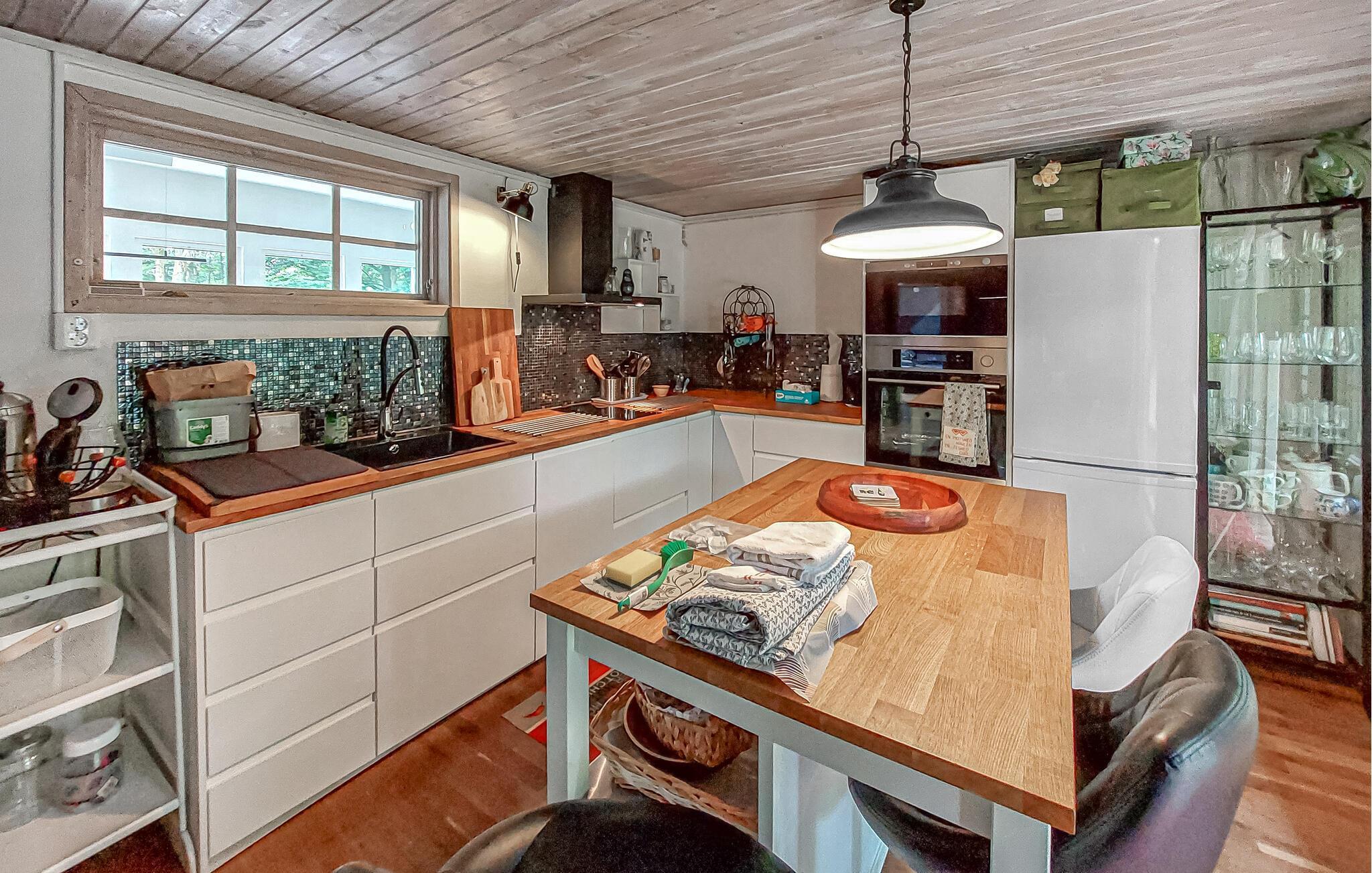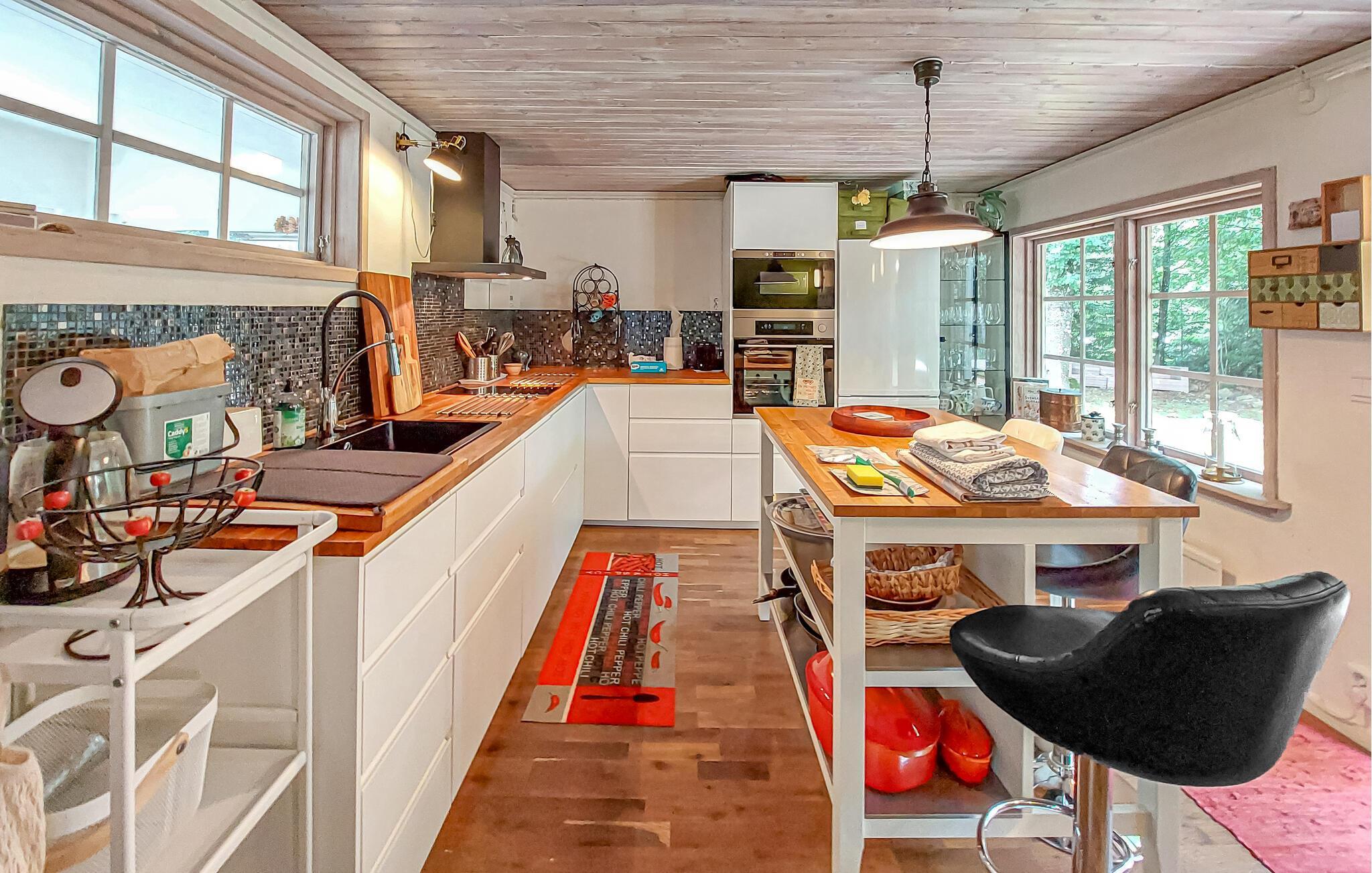 Lassen Sie sich von der behaglichen Atmosphäre dieses komfortablen Ferienhauses verzaubern. Die geschmackvolle Einrichtung mit warmen Farben und gemütlichen Sitzgelegenheiten lädt zum Verweilen ein. Bereiten Sie in der modernen Küche Ihre Lieblingsgerichte zu und genießen Sie diese am einladenden Esstisch. Nach einem erlebnisreichen Tag können Sie sich mit einem guten Buch auf das Sofa zurückziehen oder in der Sauna entspannen.