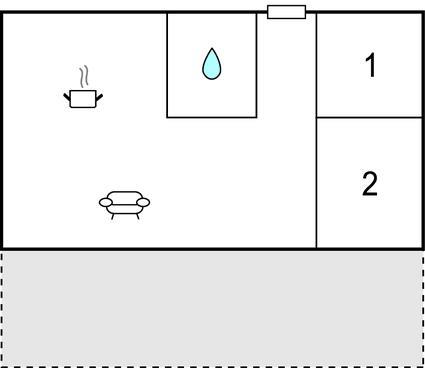 Schlafzimmer (nr. 1) - 1 Schlafmöglichkeit. (Einzelbett(en)). 2 Schlafmöglichkeiten. (Etagenbett).