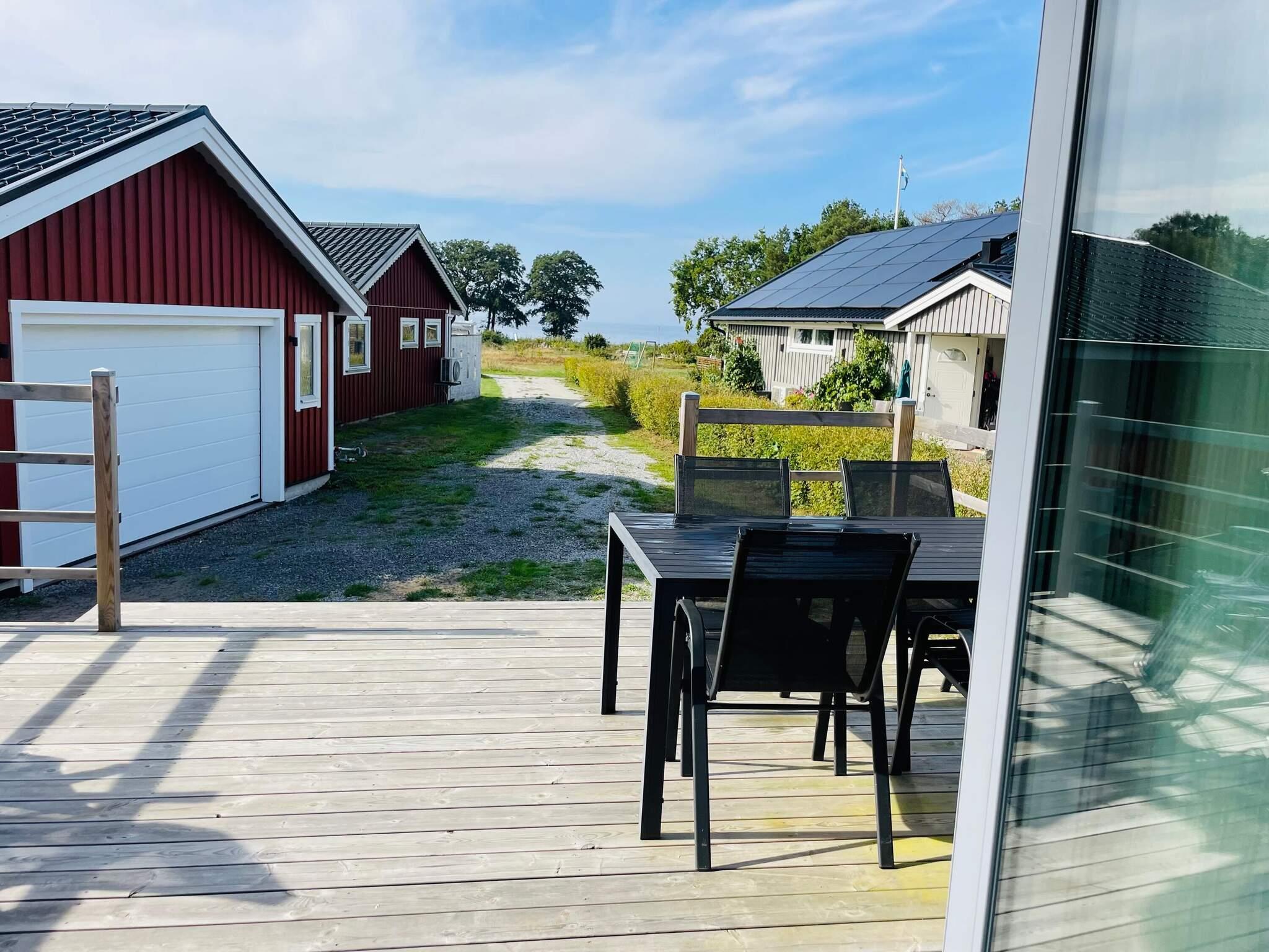 Dank der Terrasse an der gesamten Giebelseite mit Meerblick genießen Sie von fast allen Räumen aus einen herrlichen Meerblick durch die zu öffnenden Glasfronten. Durch den Eingang an der Längsseite gelangen Sie in den Flur mit Garderobe. Das Wohnzimmer ist mit Essmöbeln und einem Schlafsofa vor dem Fernseher ausgestattet, der schwedische Sender und eine große Auswahl an DVDs bietet. Die gut ausgestattete Küche zur Selbstverpflegung verfügt über eine Waschmaschine. Eine Ausziehleiter an der Wand führt hinauf zum Schlafboden mit zwei Einzelbetten, die bei Bedarf zu einem Doppelbett zusammengestellt werden können. Zudem gemütliches Schlafzimmer mit Doppelbett im Erdgeschoss und geräumiges Badezimmer mit Dusche.
