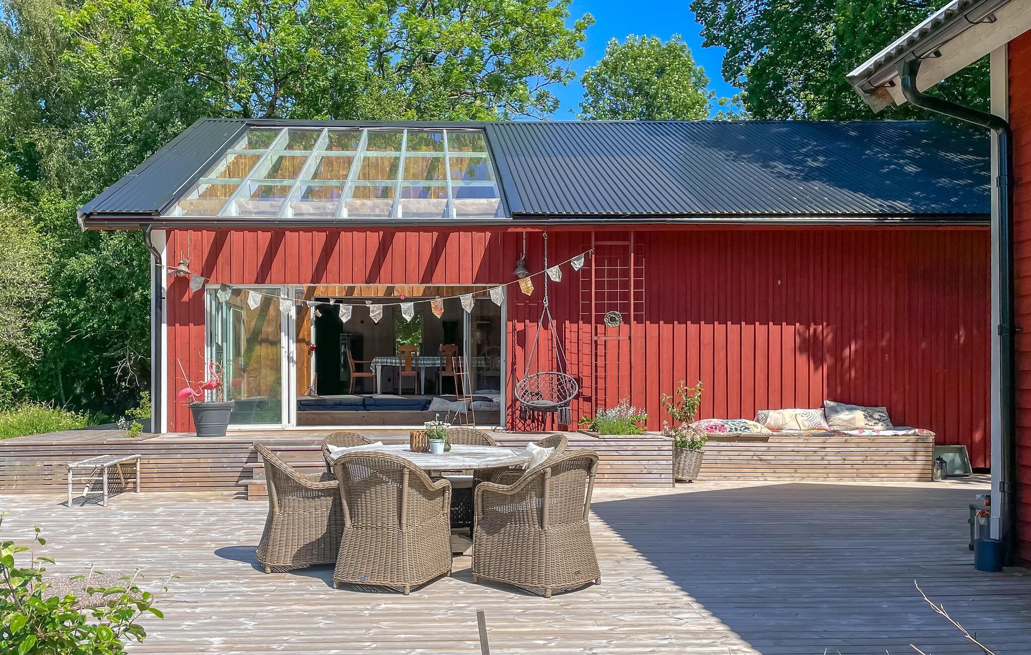 Auf der weitläufigen Terrasse können Sie bei gutem Wetter Ihr Frühstück im Freien genießen. Lassen Sie die friedliche Atmosphäre bei entspannten Lesestunden auf sich wirken und entfachen Sie den Grill, während die Kinder im eingezäunten Garten spielerisch die Natur erkunden.