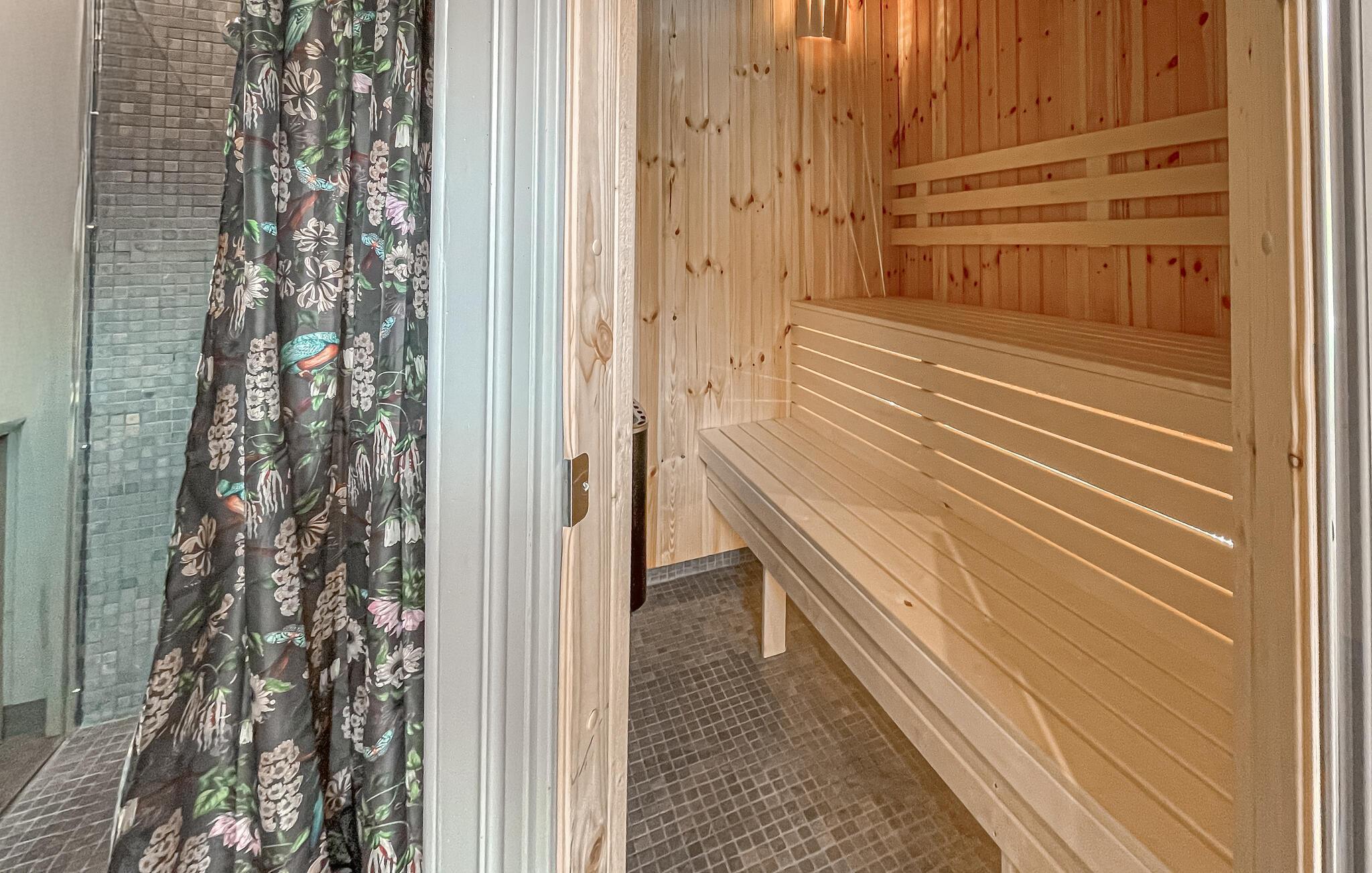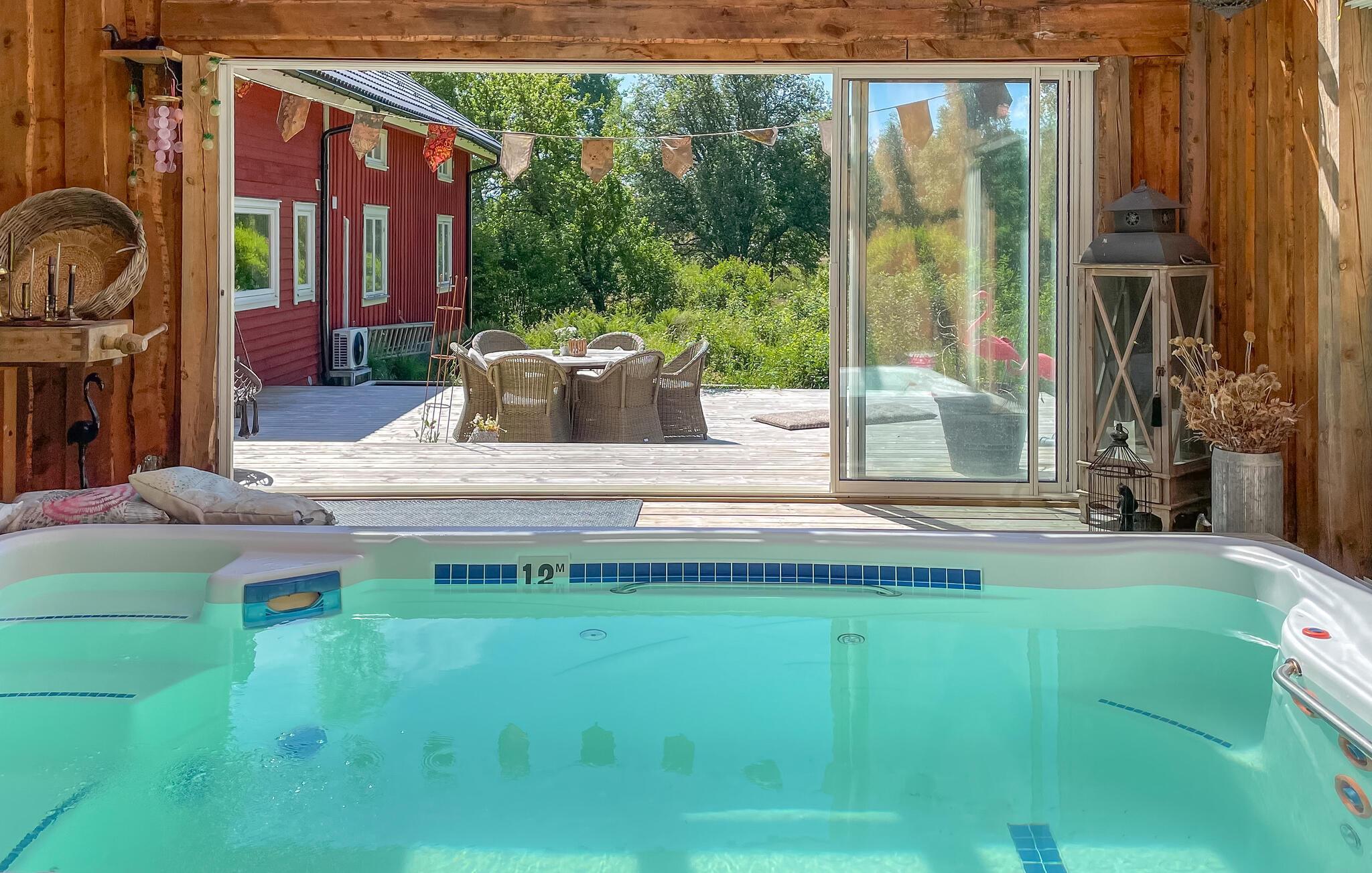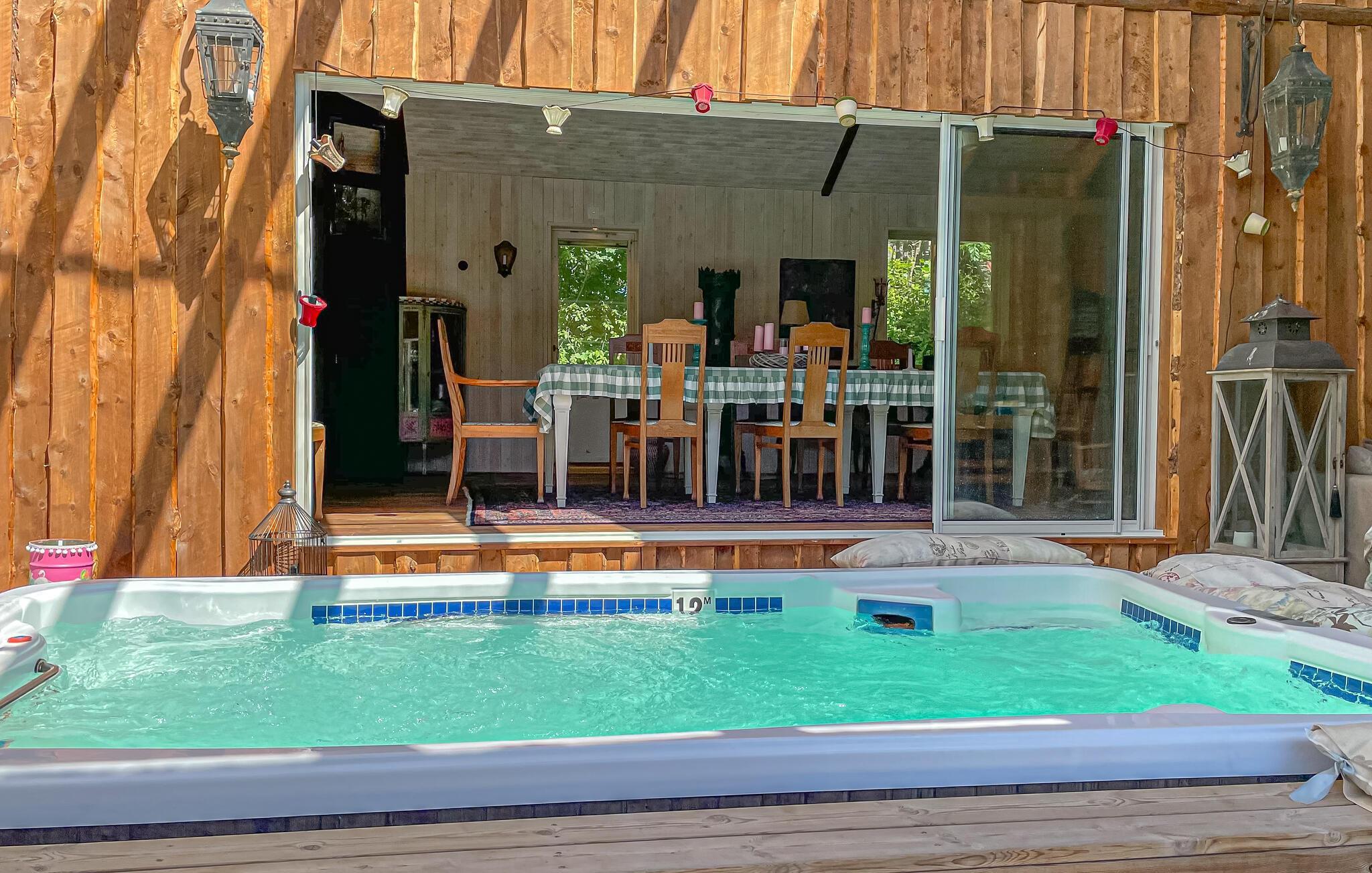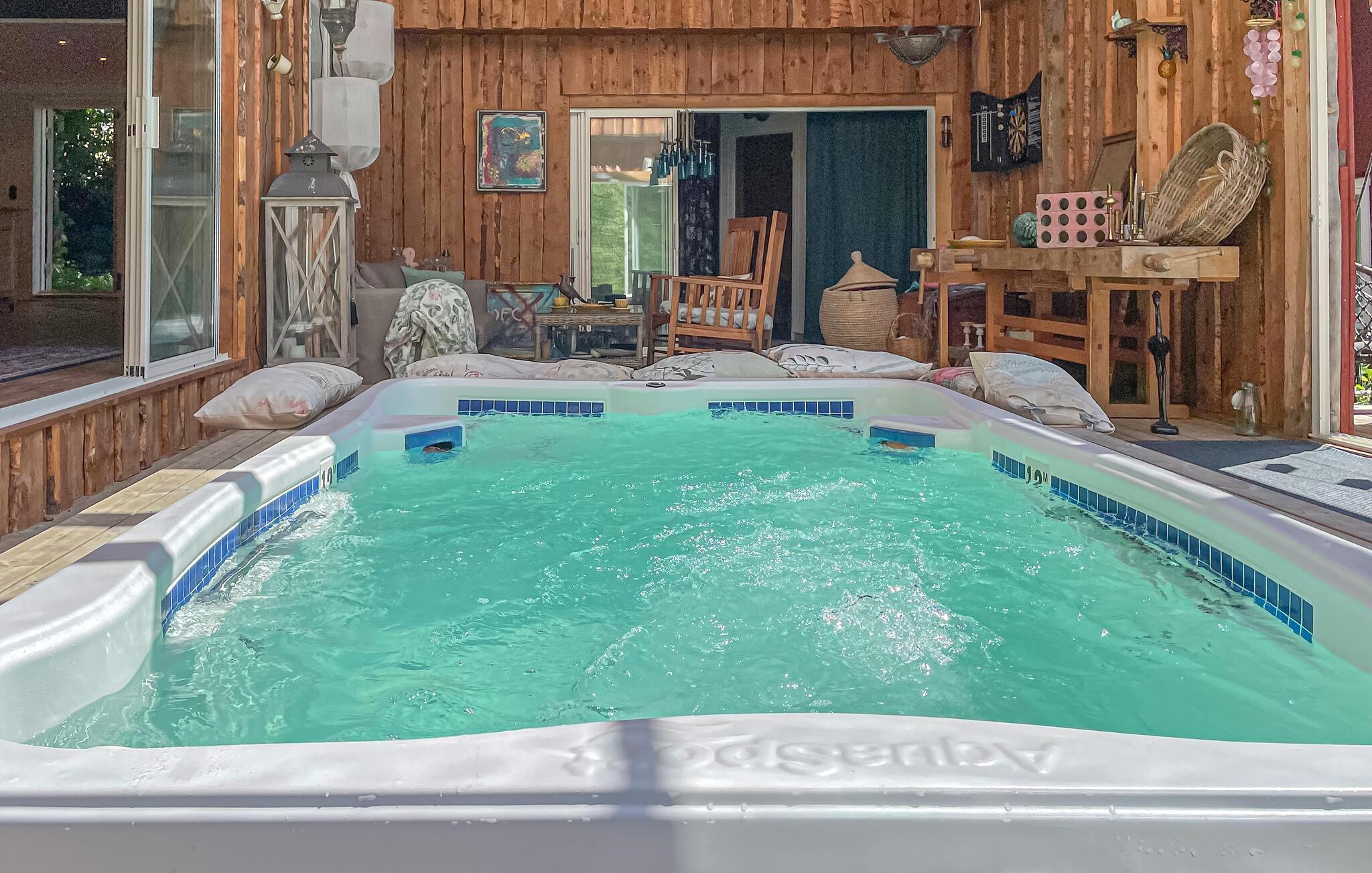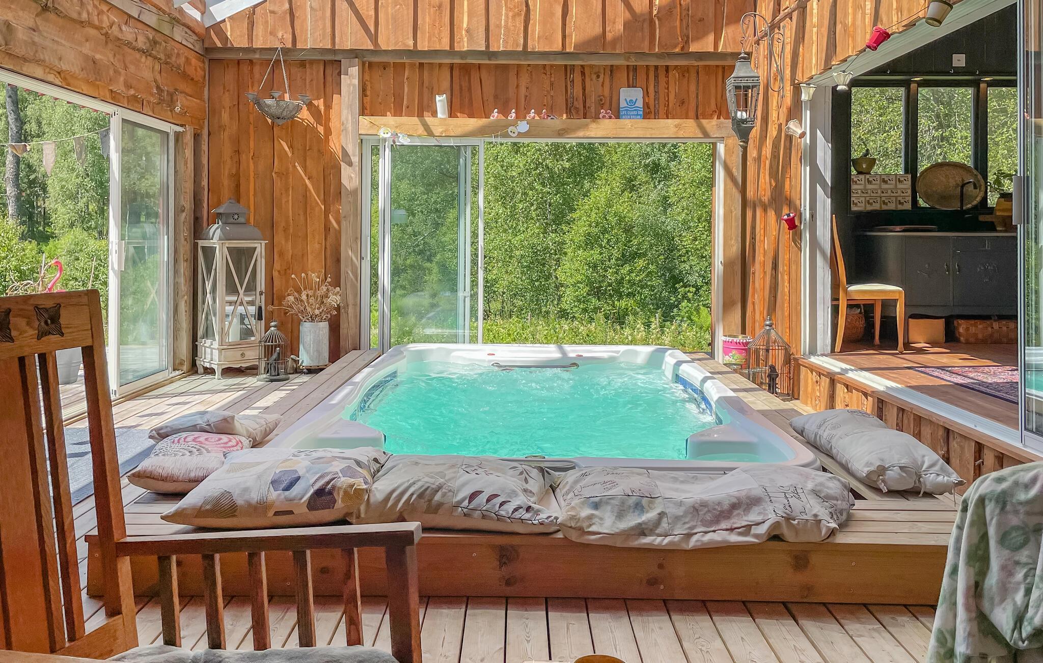 Genießen Sie erholsame Tage in diesem Ferienhaus mit Sauna und Whirlpool inmitten der Natur.