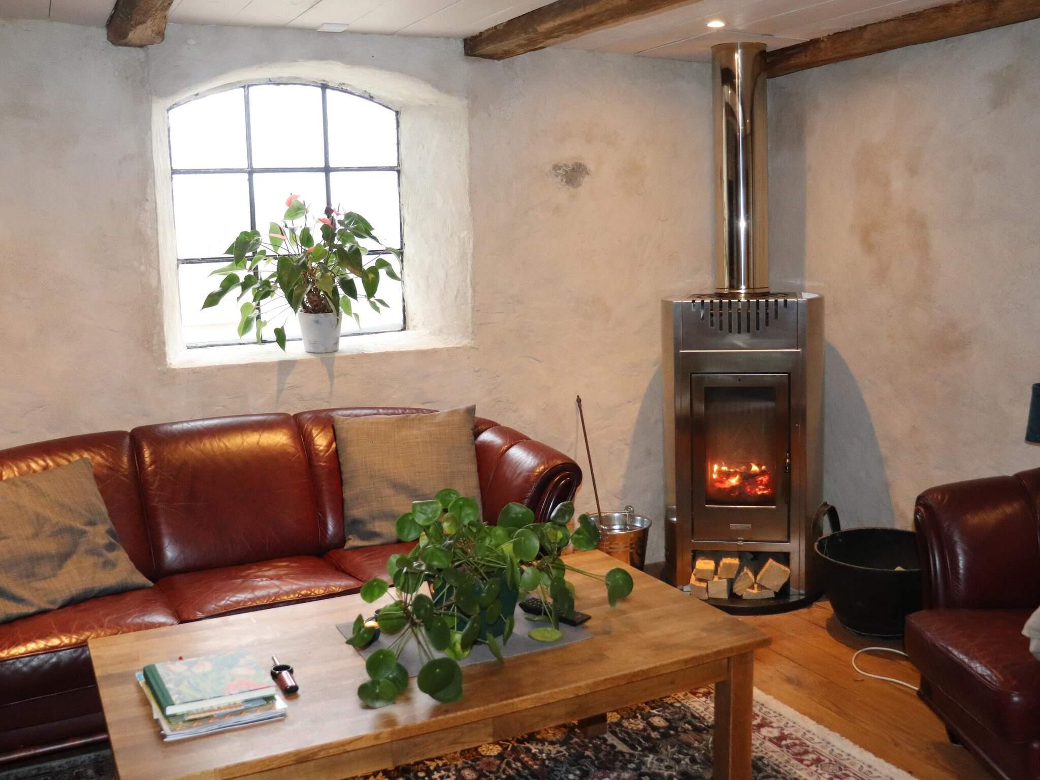 Das ehemalige Brauhaus mit ganz besonderem Charme wurde ansprechend renoviert. Das Erdgeschoss verfügt über eine gut ausgestattete Küche und einen Essbereich. Das Badezimmer ist geräumig und bietete Dusche und eine Waschmaschine. Ein Schlafzimmer mit Doppelbett, ein zweites, etwas kleineres mit zwei Einzelbetten. Das Wohnzimmer ist mit bequemen Sitzgelegenheiten, einem modernen Fernseher mit Chromecast und einem wunderbar wärmenden Holzofen eingerichtet. In Teilen des Hauses gibt es angenehme Fußbodenheizung. Freies WLAN im Haus. Im Außenbereich findet man eine schöne Holzterrasse mit herrlichem Blick auf Wiesen und Wald. Dort können Sie sowohl Ihren Morgenkaffee als auch gemütliche Grillabende genießen.