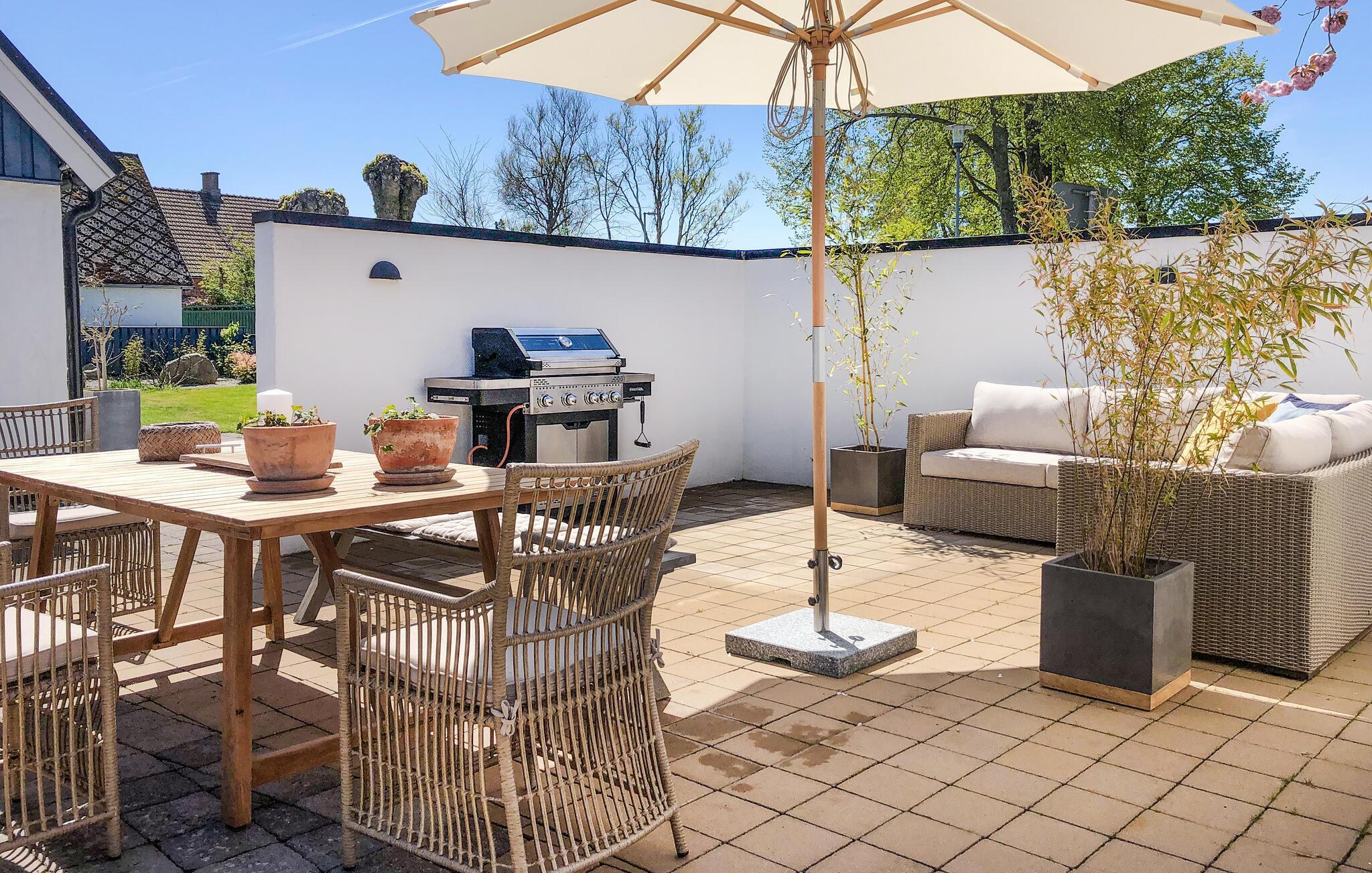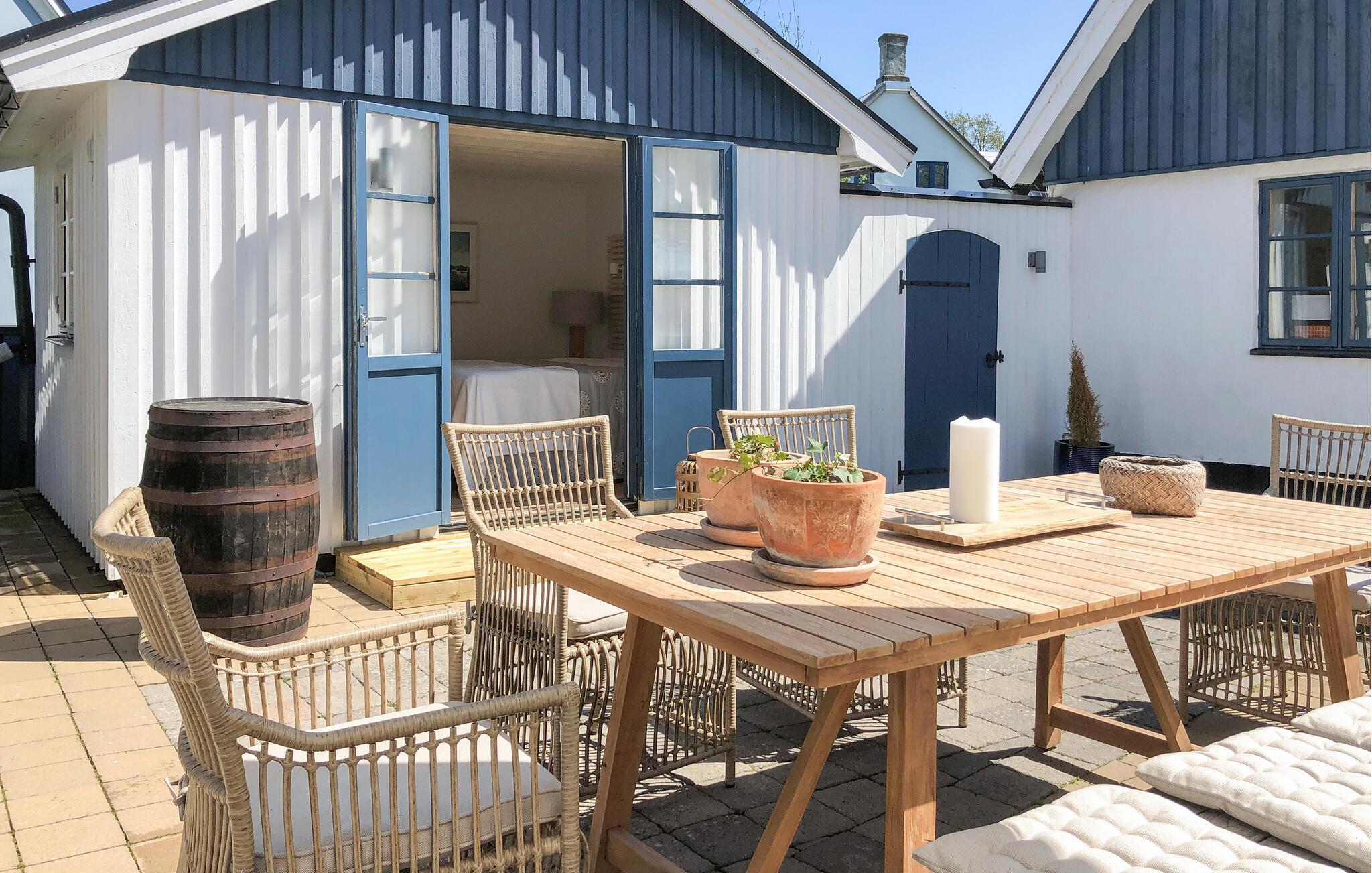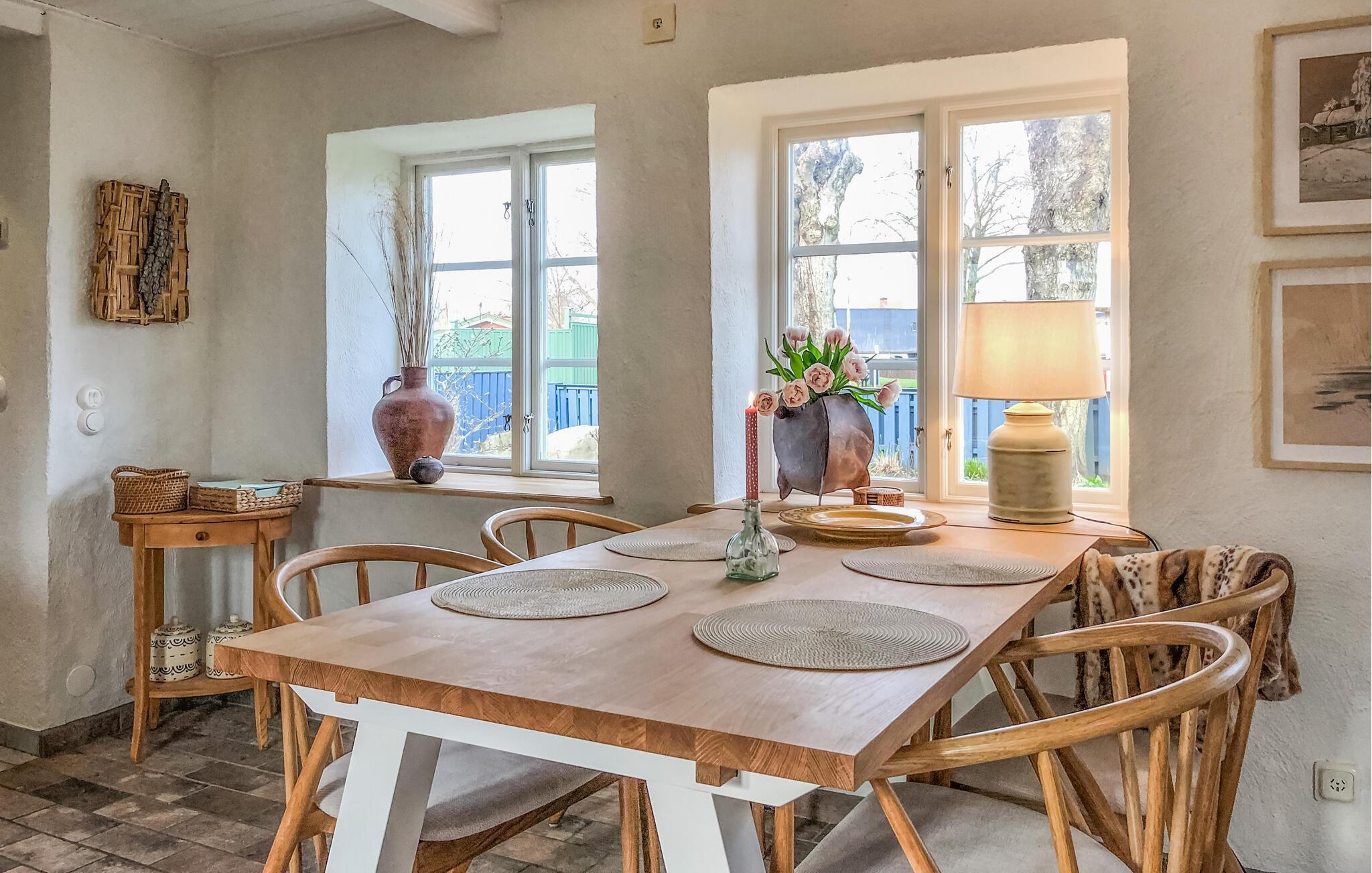 Ihr gemütliches Ferienhaus im Landesteil Schonen bietet Ihnen die Gelegenheit, einen erholsamen und ruhigen Ferienhausurlaub zu verbringen, aber auch viele unvergessliche Ausflüge zu unternehmen. Und die schöne Ostseeküste ist auch nicht weit entfernt. Das Innere des Hauses wird von traditionellen Elementen geprägt und sorgt so für eine einladende, heimelige Atmosphäre. Die gut ausgestattete Küche ist ideal, um gemeinsam kulinarische Köstlichkeiten zuzubereiten. Ihre Mahlzeiten können Sie am Esstisch mit Blick nach draußen genießen. Entspannen Sie auf den bequemen Sofas und lassen Sie sich von der angenehmen Wärme des Kaminofens verwöhnen.