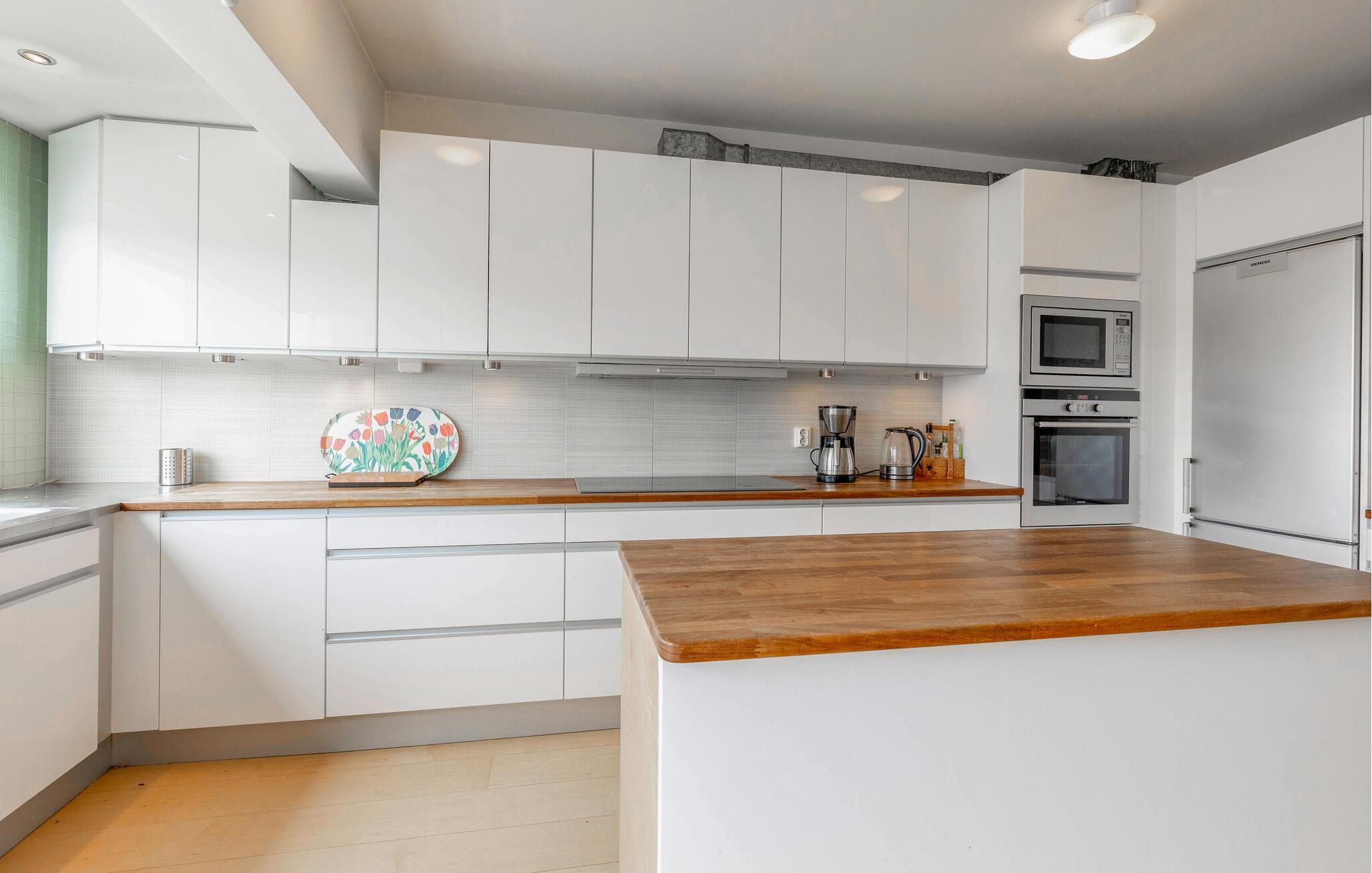 Ihr Ferienhaus bietet Ihnen eine stilvolle und gemütliche Einrichtung, die Sie sofort willkommen heißt. Genießen Sie Ihr Frühstück in der großzügigen Küche, die mit allem ausgestattet ist, was Sie für einen komfortablen Aufenthalt benötigen. Der Esstisch lädt zu gemeinsamen Mahlzeiten ein, und die offene Gestaltung der Räume sorgt für eine helle und freundliche Atmosphäre. Machen Sie es sich im Wohnbereich gemütlich. Hier finden Sie eine kuschelige Sofalandschaft, wo Sie entspannte Stunden verbringen können. Ob beim Lesen eines Buches oder beim gemeinsamen Fernsehen, hier ist der ideale Ort, um die Seele baumeln zu lassen. Die großen Fenster bieten einen herrlichen Blick auf die Umgebung und lassen viel Licht in den Raum.