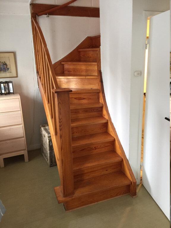 Das Ferienhaus ist modern eingerichtet, aber der alte Charme ist erhalten geblieben. In der ersten Etage befinden sich alle 3 Betten. Es gibt ein Schlafzimmer mit einem Doppelbett in full-size und davon durch einen Vorhang abgesondert gibt es ein Einzelbett auf dem gleichen Etagenabsatz.
