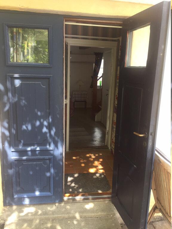 Im Erdgeschoss befindet sich eine gute kleine Küchenzeile mit ua Herd mit 3 Platten und Backofen und Kühlschrank. Die Küchenzeile ist in offener Kombination mit dem Esszimmer und der Halle, in der sich auch der Mikron und der Gefrierschrank befinden. Separates WC neben der Halle. Das Badezimmer, das sich in einem separaten Haus direkt neben dem Ferienhaus befindet, verfügt über eine Dusche, Waschmaschine und Trockner.