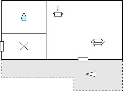 Badezimmer (nr. 1) - WC. Warmes und kaltes Wasser. Dusche