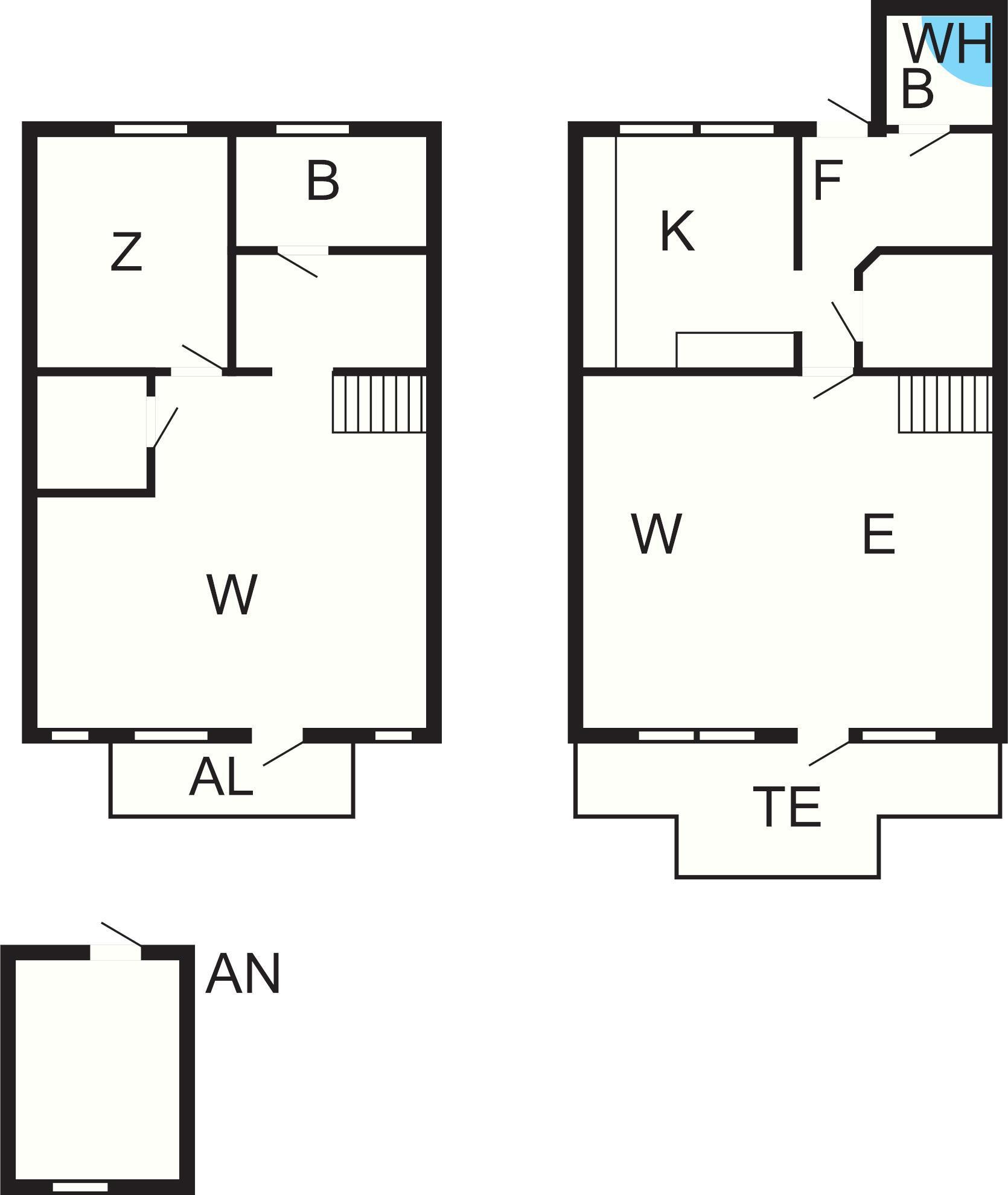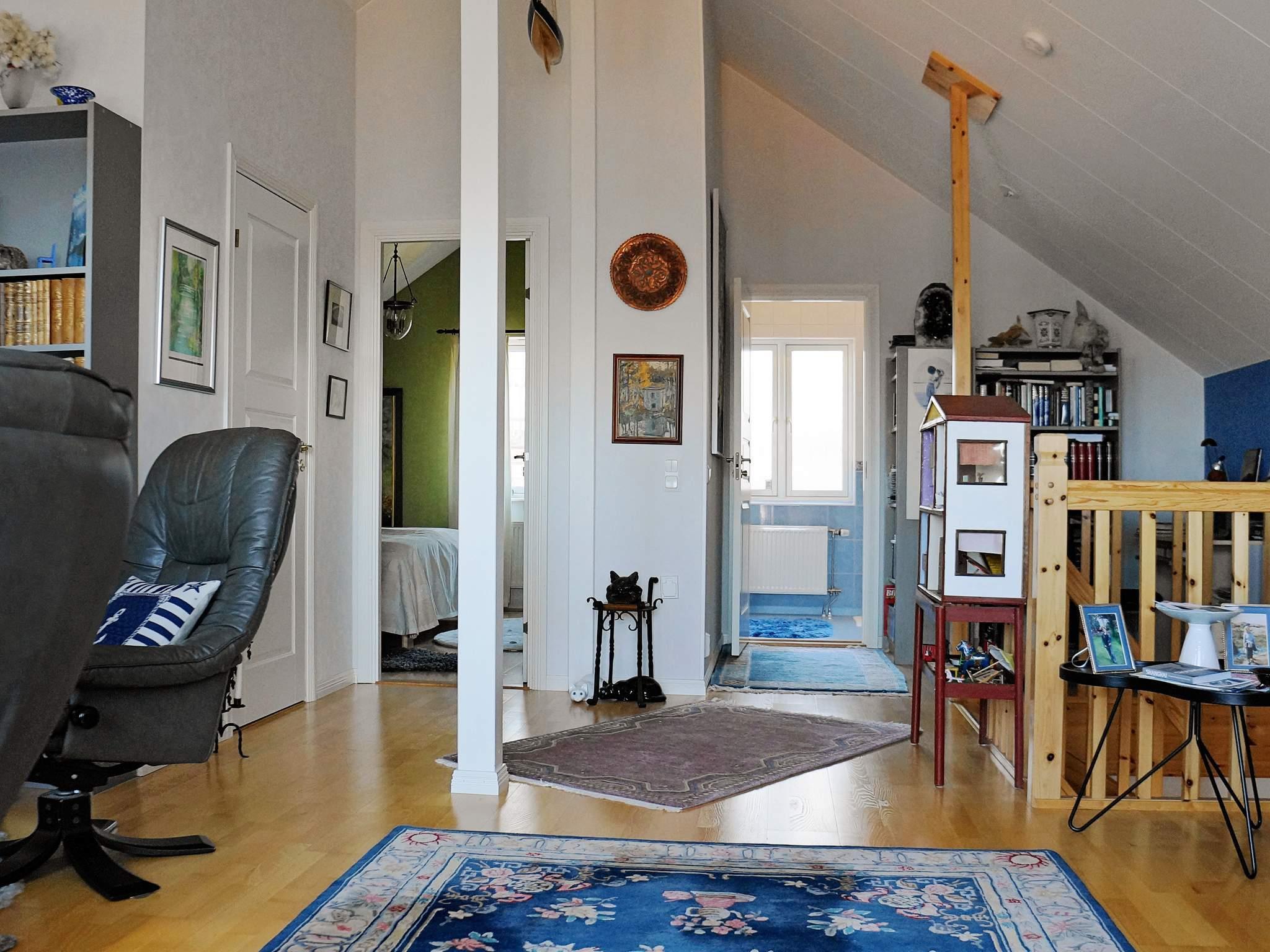 Das Ferienhaus hat 2 Etagen. Im Parterre ansprechende Küche mit Essecke und geräumiger Wohnbereich mit Esstisch und Zugang zur schönen Veranda davor mit schützender Überdachung durch den Balkon. Zudem Bad m. Dusche/WC und praktische Waschküche auf dieser Etage. Eine Treppe höher findet man das sogenannte Atelier, ein Aufenthaltsbereich mit Dachschrägen und luftiger Raumhöhe. Hier befindet sich die TV-Ecke mit bequemer Schlafcouch. Zudem Zugang zum Balkon mit wunderbarer Panorama-Aussicht zu Küste und Meer! Außerdem geräumiges SZ mit DB und attraktives Bad mit Dusche und Whirlwanne für 1 Erw. oder 2 Kinder auf dieser Etage.