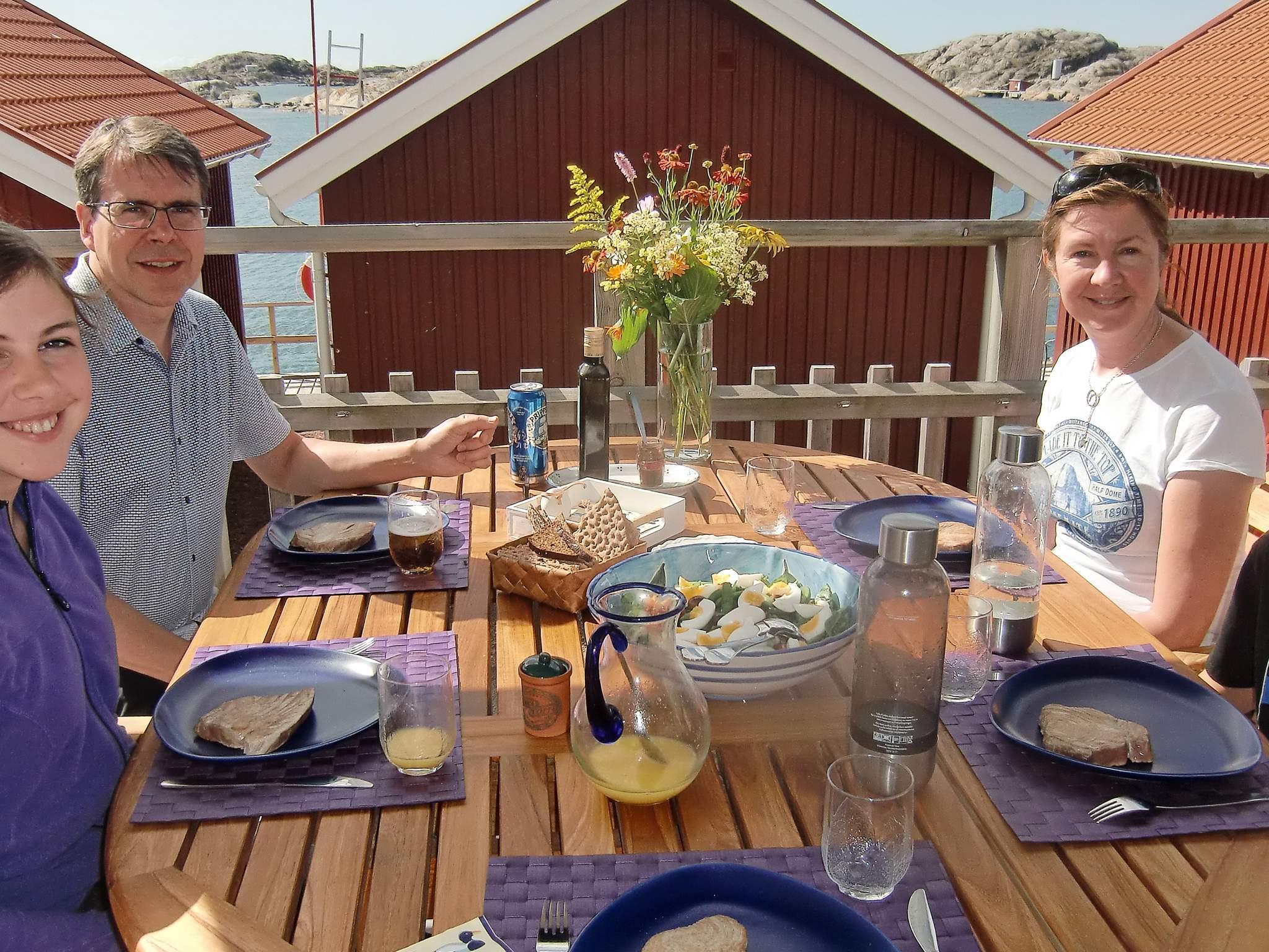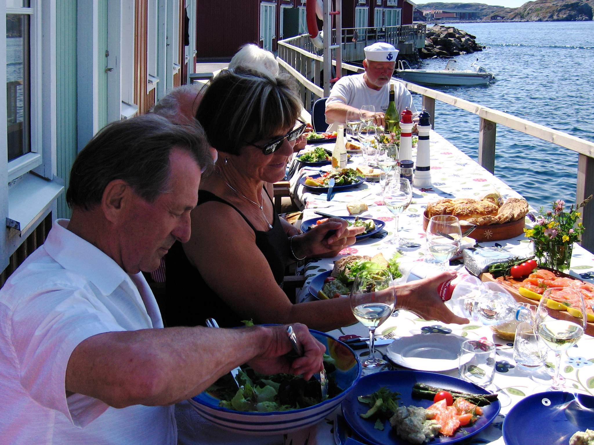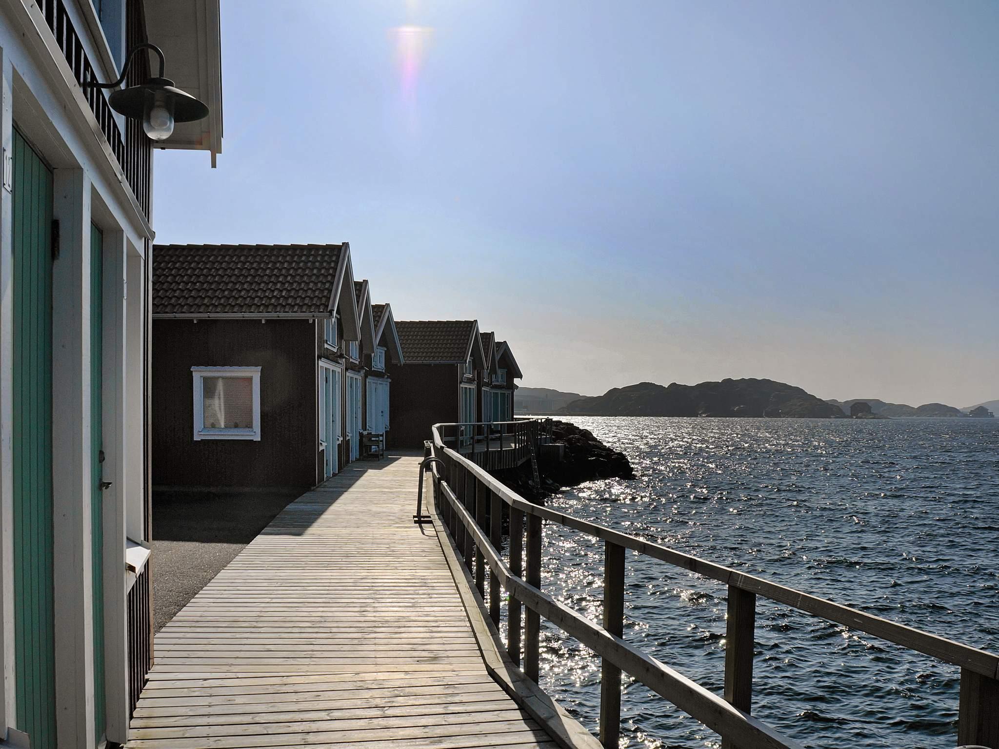 Noch dichter am Wasser kann man kaum wohnen! Nur etwa 400 m weiter findet man bei Tubbeviken ein kinderfreundliches Badeufer mit Strandlinie, Felsen und Steg. Das Küstenstädtchen Skärhamn hat außer einem Hafen, einigen hübschen Läden und Supermarkt auch eine Aquarell-Ausstellung im Nordiska Akvarellmuseet oberhalb des Hafens zu bieten. Diverse Ausflugsziele liegen in Reichweite für Tagesausflüge.