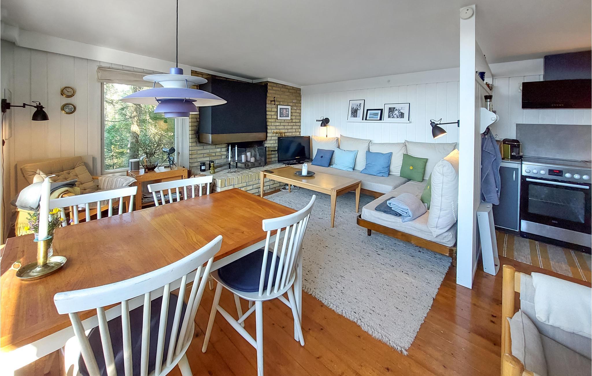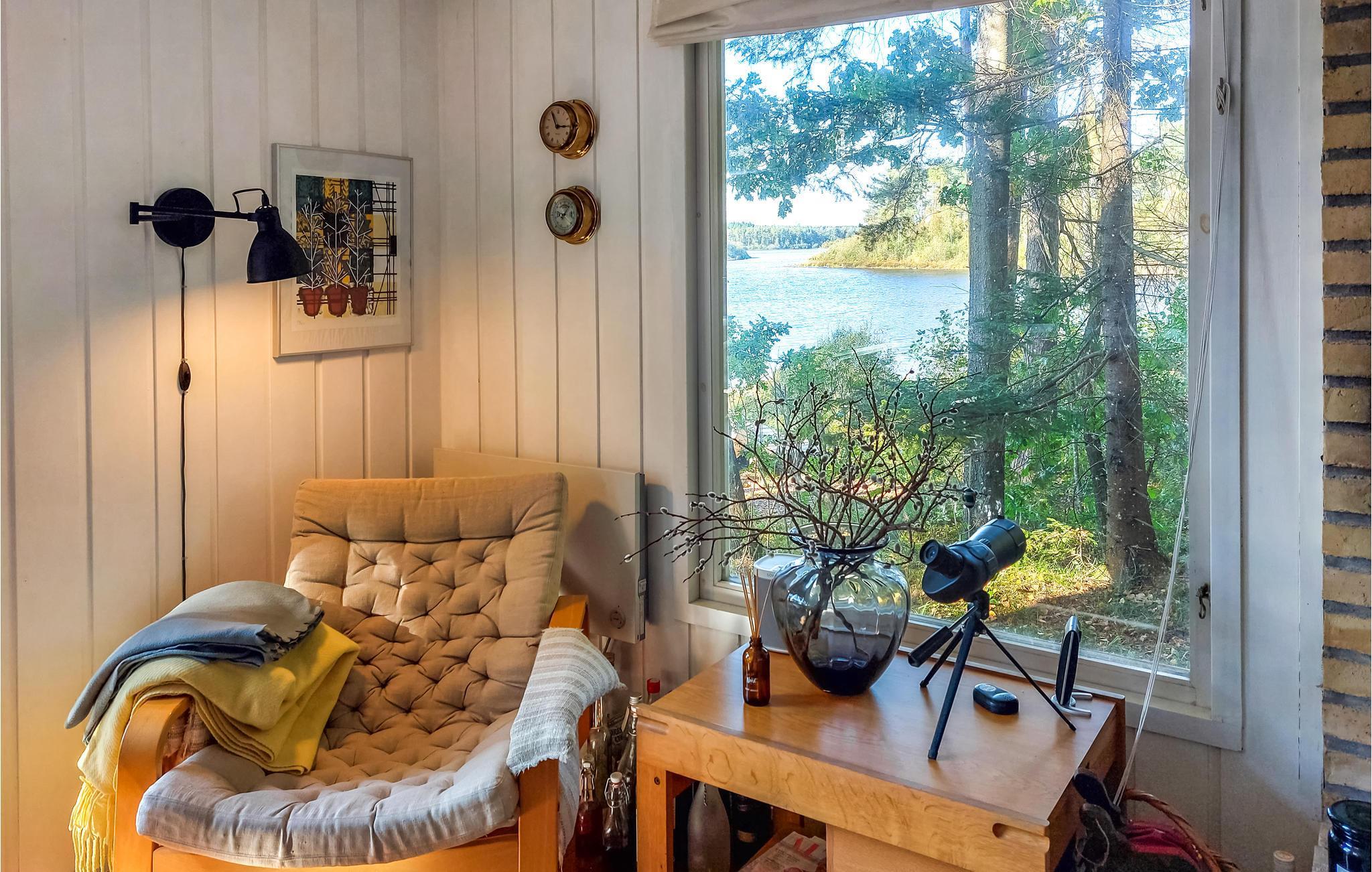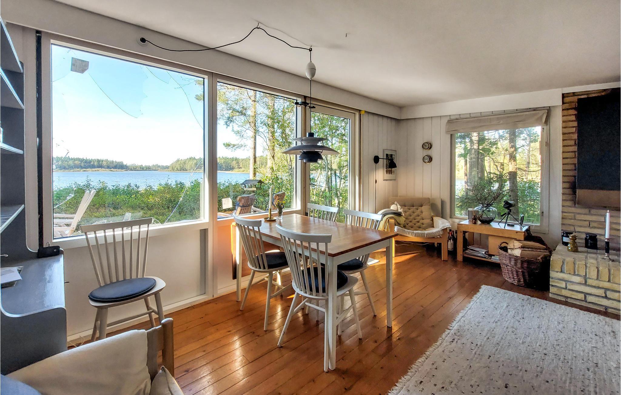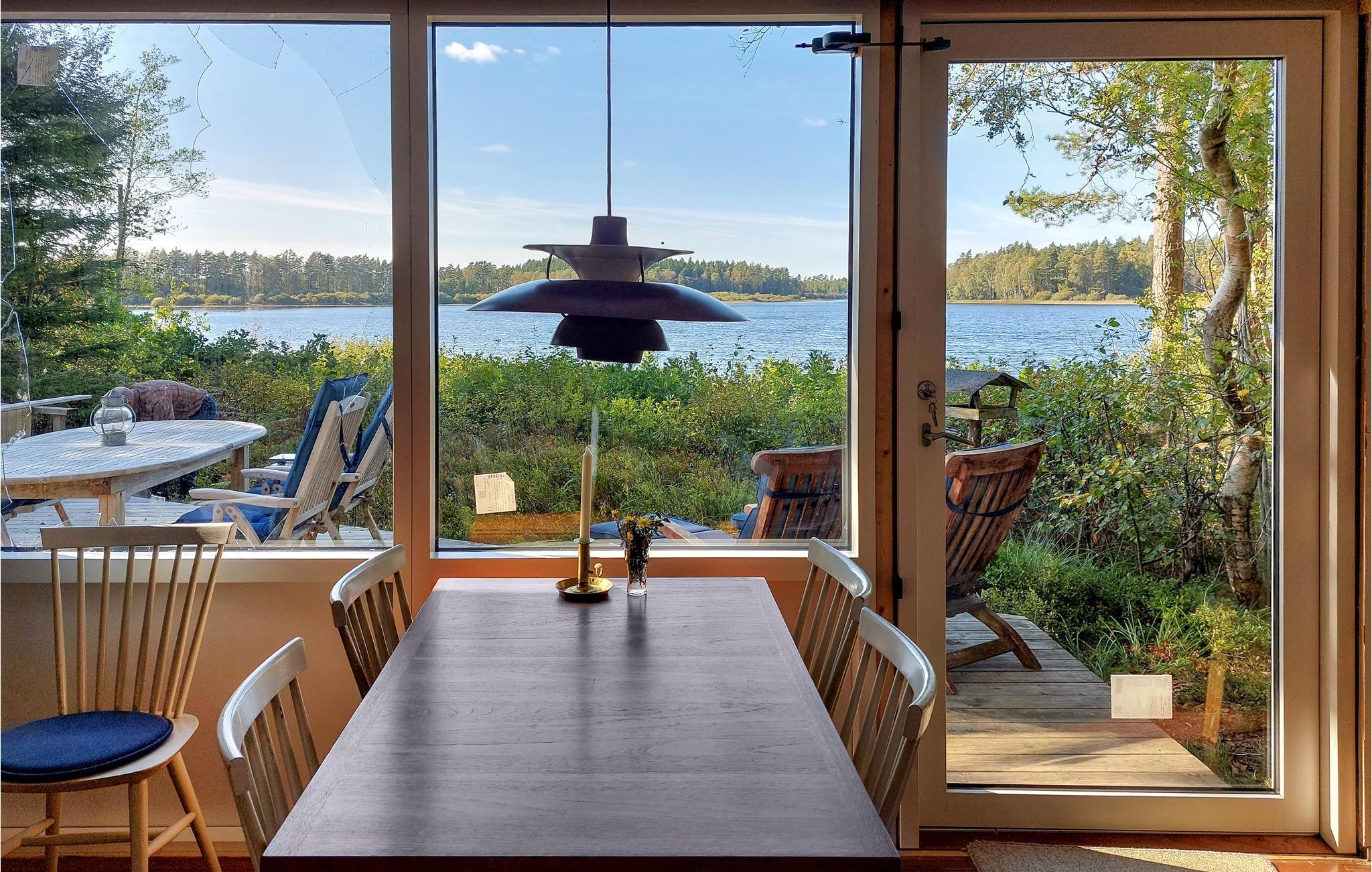 Dieses Ferienhaus bezaubert mit einer wunderschönen, bewaldeten Lage am glitzernden See. Es ist der optimale Ort für Urlauber, die Aktivitäten auf dem Wasser und das Angeln lieben, Ruhe und Natur suchen und ihre Privatsphäre schätzen. Beim Betreten spüren Sie sofort die warme Atmosphäre im Haus. Hier verschmelzen gemütliche Möbel, schöne Panoramafenster, niedliches Dekor und eine offene Wohnküche und bilden einen angenehmen Ort zum geselligen Beisammensein. Hier wird Familienzeit großgeschrieben. Zaubern Sie gemeinsam in der Küche leckeres Essen, das Sie im Wohnraum mit Blick auf den See oder auf der tollen Terrasse genießen können. Trinken Sie Ihren ersten Kaffee am See und genießen Sie die Stille. Am Abend gibt es den schönsten Sonnenuntergang. Nutzen Sie die Lage des Hauses und gehen Sie schon früh morgens angeln oder spazieren zum nahen Strand.