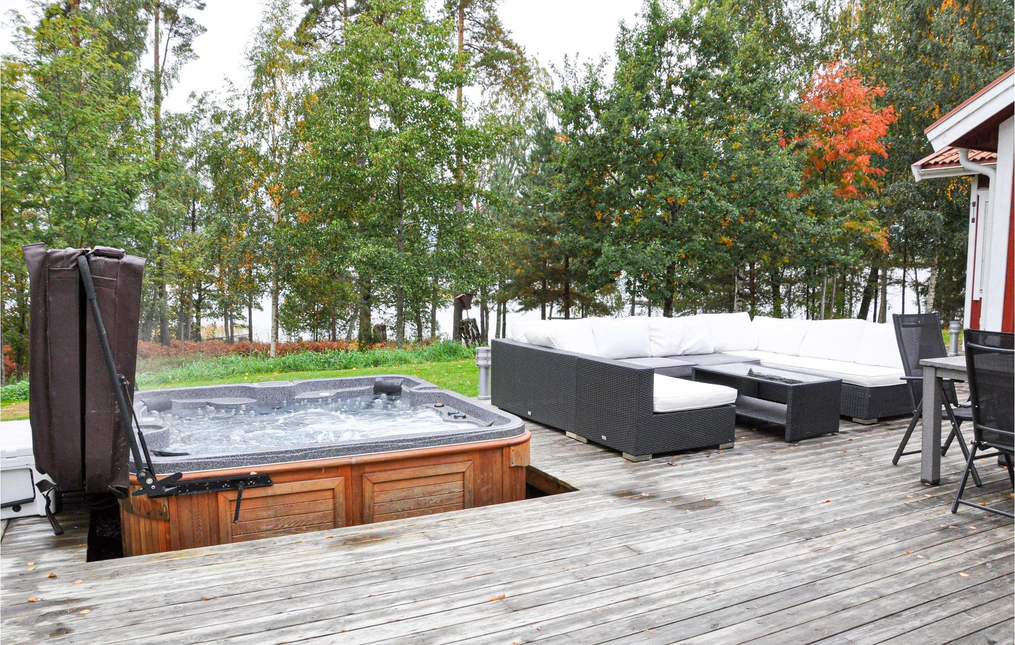 Das absolute Highlight des Hauses ist der Privatstrand, der etwa 40 Meter vom Haus entfernt ist. Hier können Sie ins Wasser springen und sich erfrischen. Zudem finden Sie eine holzbefeuerte Sauna auf einem Steg im Wasser. Mit einem Ruderboot, das in dieser Unterkunft inbegriffen ist, gelangen Sie dorthin. Das Boot können Sie auch für Ihre Angelausflüge auf dem See nutzen und frischgefangen Fisch mit zurückfinden.