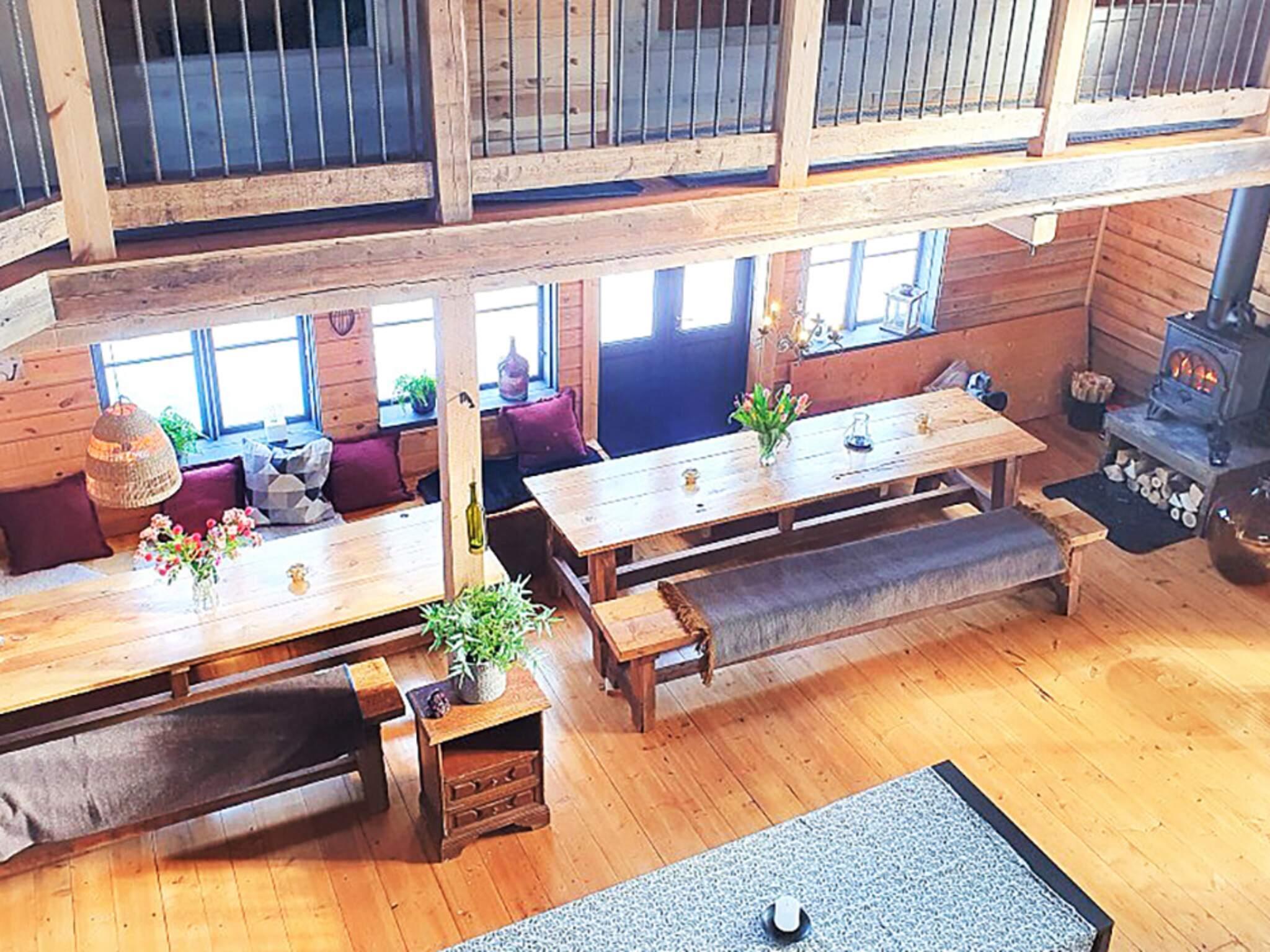 Die Lodge befindet sich auf einem Bauernhof mít 7,5 Hektar Land und bietet sowohl drinnen als auch draußen viel Platz für die ganze Familie. Im Erdgeschoss findet man das Badezimmer mit Dusche, ein großes Familienzimmer mit offener Küche und einem langen Esstisch, einer Sofaecke mit Smart-TV und WLAN sowie einen gusseisernen Kamin, an dem man gemütlich vor dem Feuer sitzen kann.