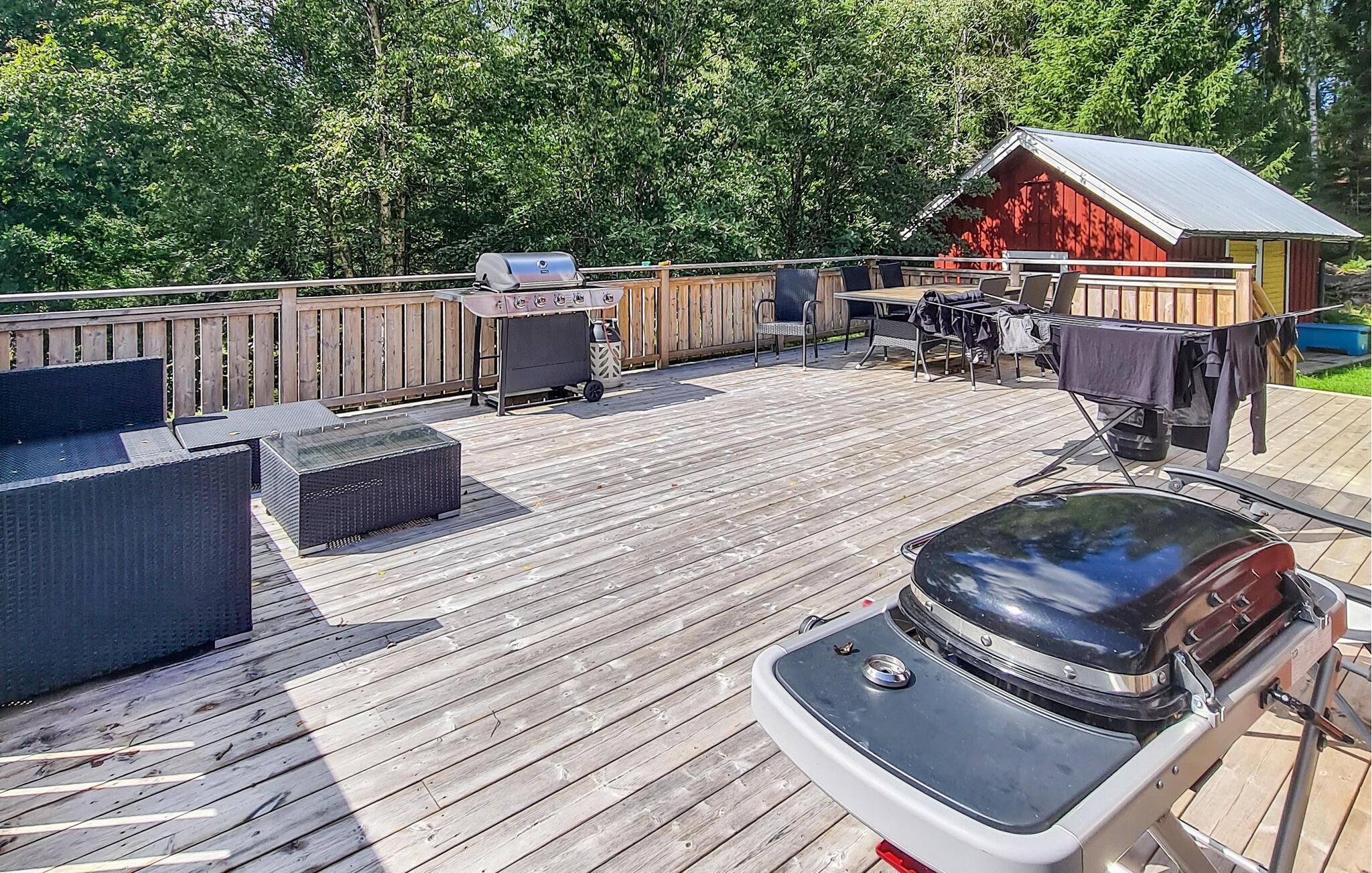 Aber nicht nur das schöne Haus wird Sie begeistern, sondern auch die große Holzterrasse, die zum Grillen, Essen und Sonnenbädern einlädt. Während die einen am Tisch Karten spielen, können die anderen sich im Pool erfrischen oder Wildtiere auf dem Wald beobachten.