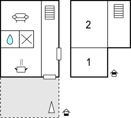 Wohnraum - 2 Schlafmöglichkeiten. (Matratze).