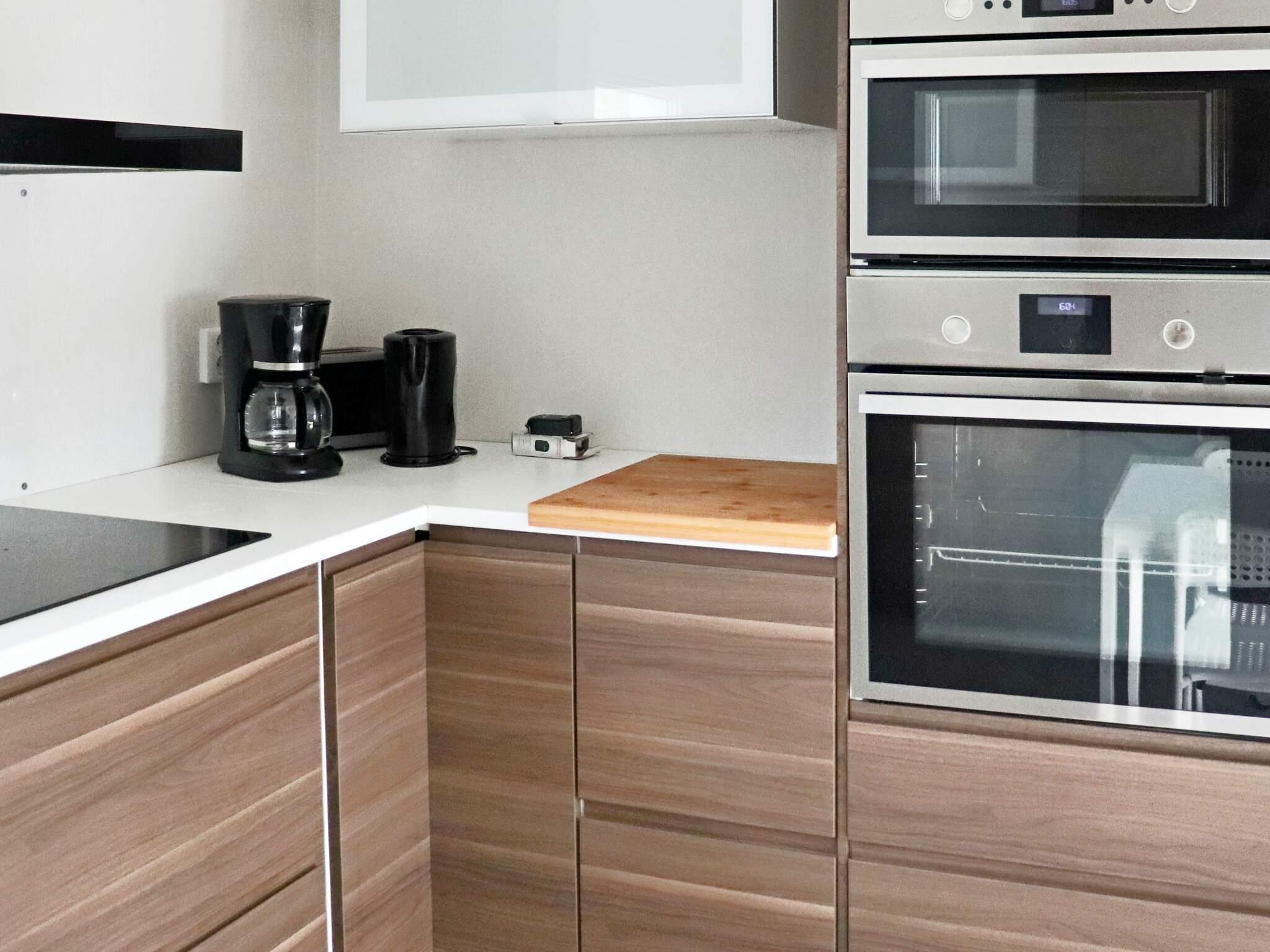 Küche: E-Herd, Ofen, Kühl-Gefrier-Kombi, Mikrow., Kaffeem., Spülm.