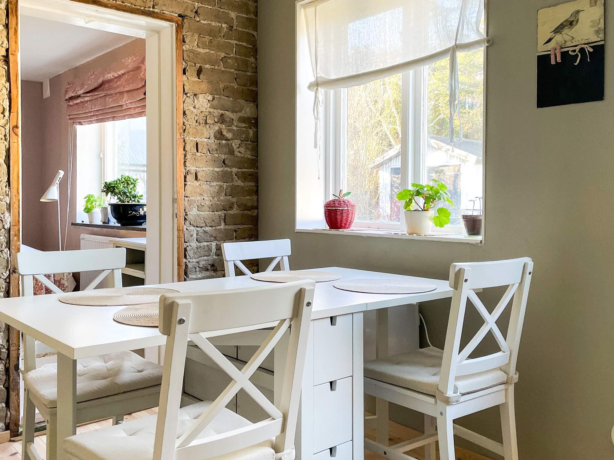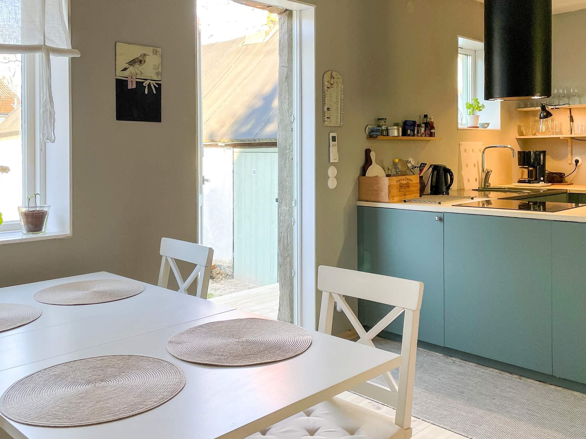 Von der Küche führt die Terrassentür auf eine größere Terrasse mit Blick auf grüne Wiesen – ein perfekter Ort zum Entspannen oder für ein leckeres Essen im Freien. Die Unterkunft ist ein hervorragender Ausgangspunkt, um die Schätze Österlens zu entdecken – von malerischen Dörfern und sanften Hügeln bis hin zu fantastischen Stränden und lokalen Köstlichkeiten.
