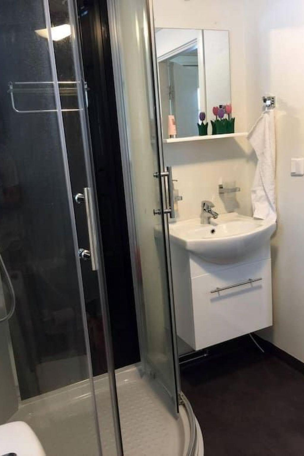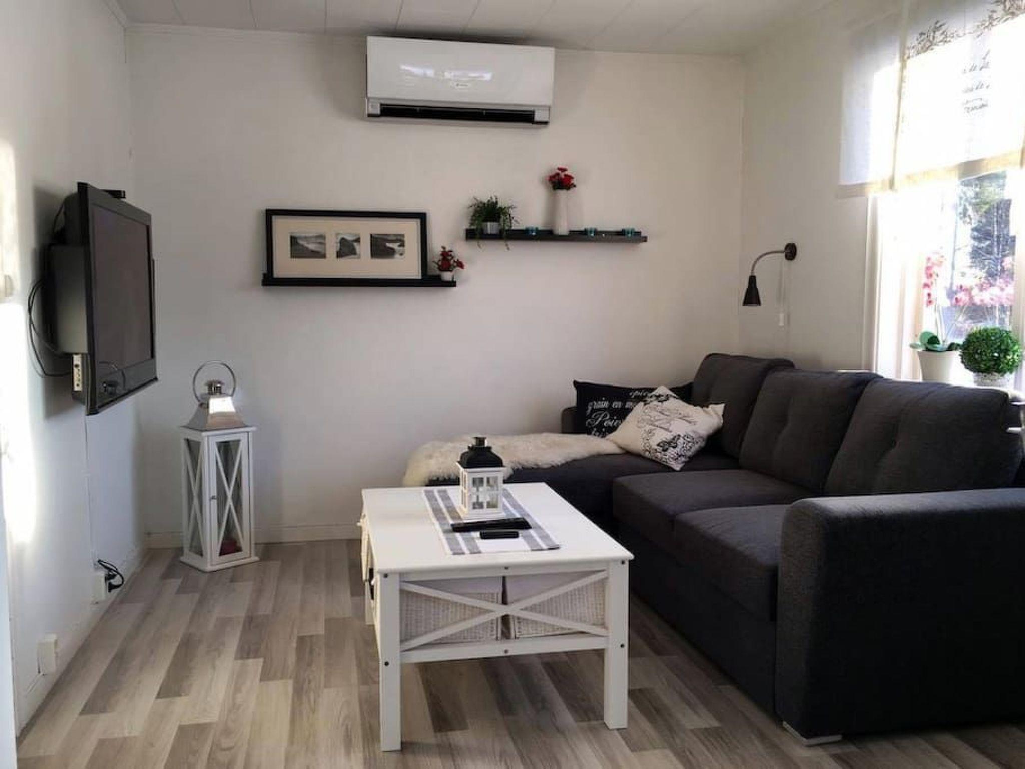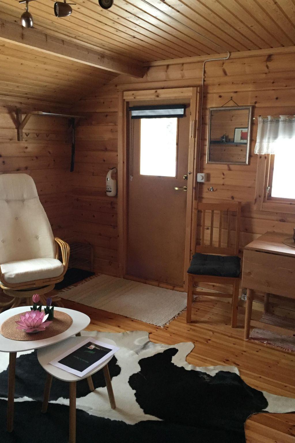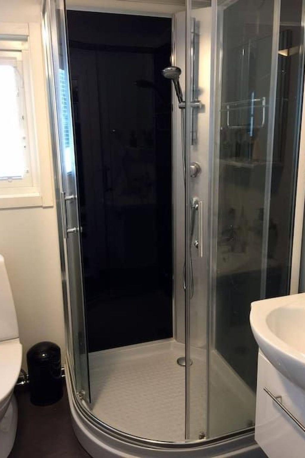 Das Holzhaus bietet Platz für bis zu sieben Personen und verfügt über ein klimatisiertes Wohn- und Esszimmer mit einem Schlafsofa, einem Couchtisch, einem Flachbildfernseher mit schwedischen Sendern, Apple TV, Google Chrome und einem iPad-Anschluss sowie einem Esstisch mit vier Stühlen. Die Küche ist komplett mit allen notwendigen Geräten ausgestattet und verfügt über einen weiteren Esstisch mit vier Stühlen. Das Schlafzimmer ist mit einem Etagenbett, bestehend aus einer 90 x 200cm Matratze und einer 120 x 200cm Matratze, für bis zu drei Personen ausgestattet. Das Badezimmer verfügt über eine Dusche, ein Waschbecken, eine Toilette und eine Waschmaschine mit Trocknerfunktion. Der 15 m² große Anbau besteht aus einem Wohn-Schlafraum mit einem Schlafsofa, einem Sessel, einem Couchtisch, einem Flachbildfernseher, einem Regal und einem Esstisch mit zwei Stühlen. Wi-Fi ist verfügbar.