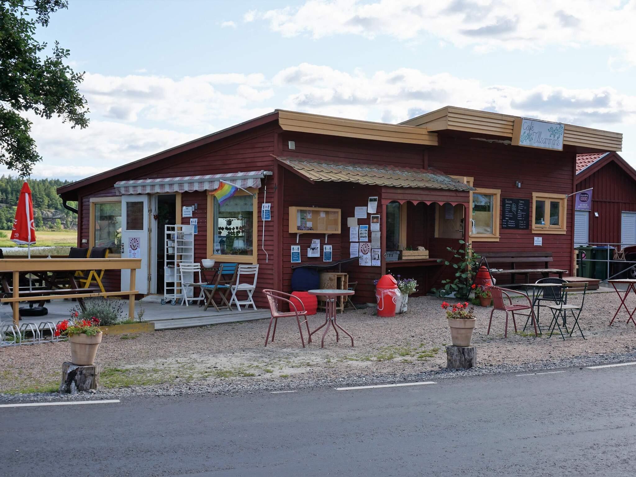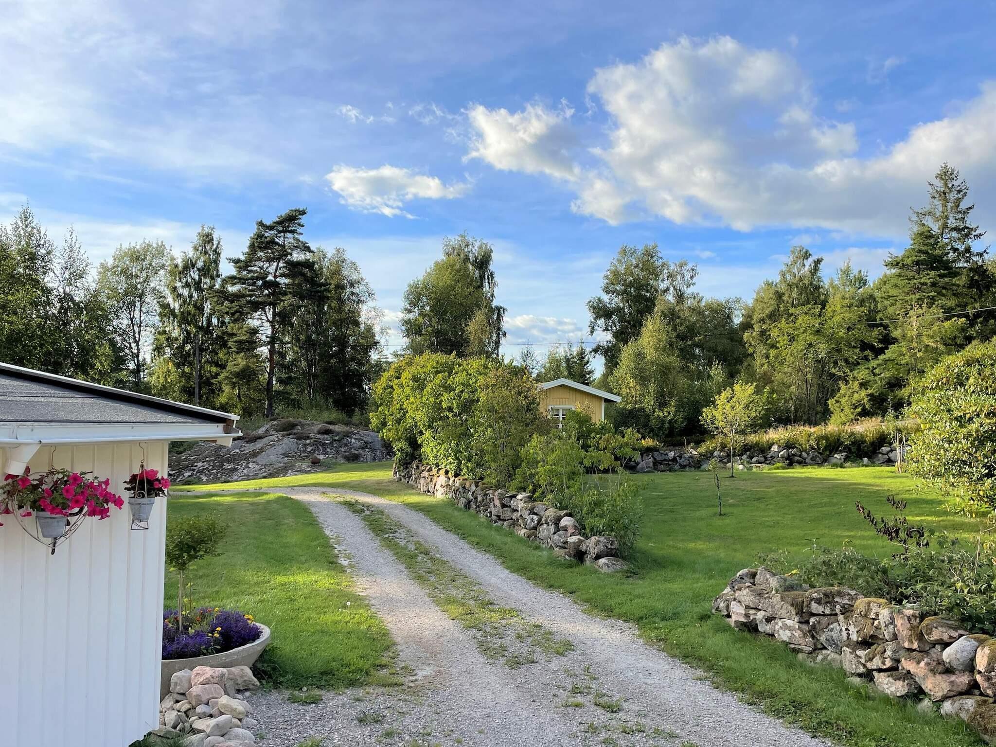 Grundstück mit gemeinschaftlicher Rasenfläche und ringsum Bäume sowie Naturflächen zum Sammeln von Beeren und Pilzen je nach Saison. In Slussen, 4 km entfernt, gibt es sowohl ein Restaurant, eine Badestelle mit Sprungturm als auch im Sommer gut besuchte Musikabende mit Live-Musik.