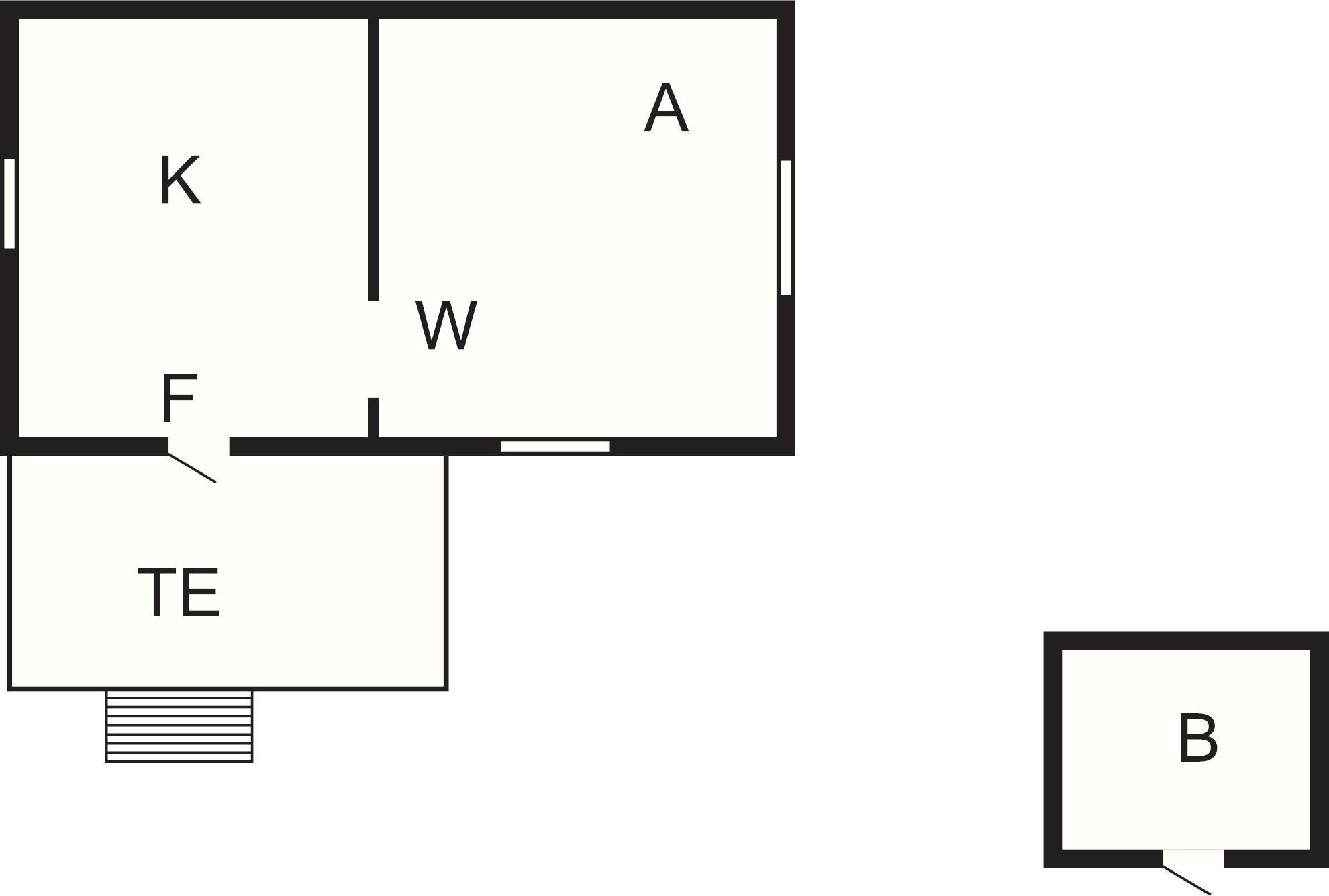 Das Häuschen bietet einfacheren Standard und dennoch wohnlichen Charme. Es hat eine überdachte Veranda mit Gartenmöbeln. Vom Eingang geht man direkt in die helle, separate Küche mit Esstisch und zwei Stühlen. Es gibt dort einen Herd mit 2 Platten, Backofen, Mikrowelle, Kaffeemaschine und Kühlschrank (kein Gefrierfach). Wenn Sie ein Baby dabei haben, gibt es sowohl einen Hochstuhl als auch ein Reisebettchen im Häuschen.