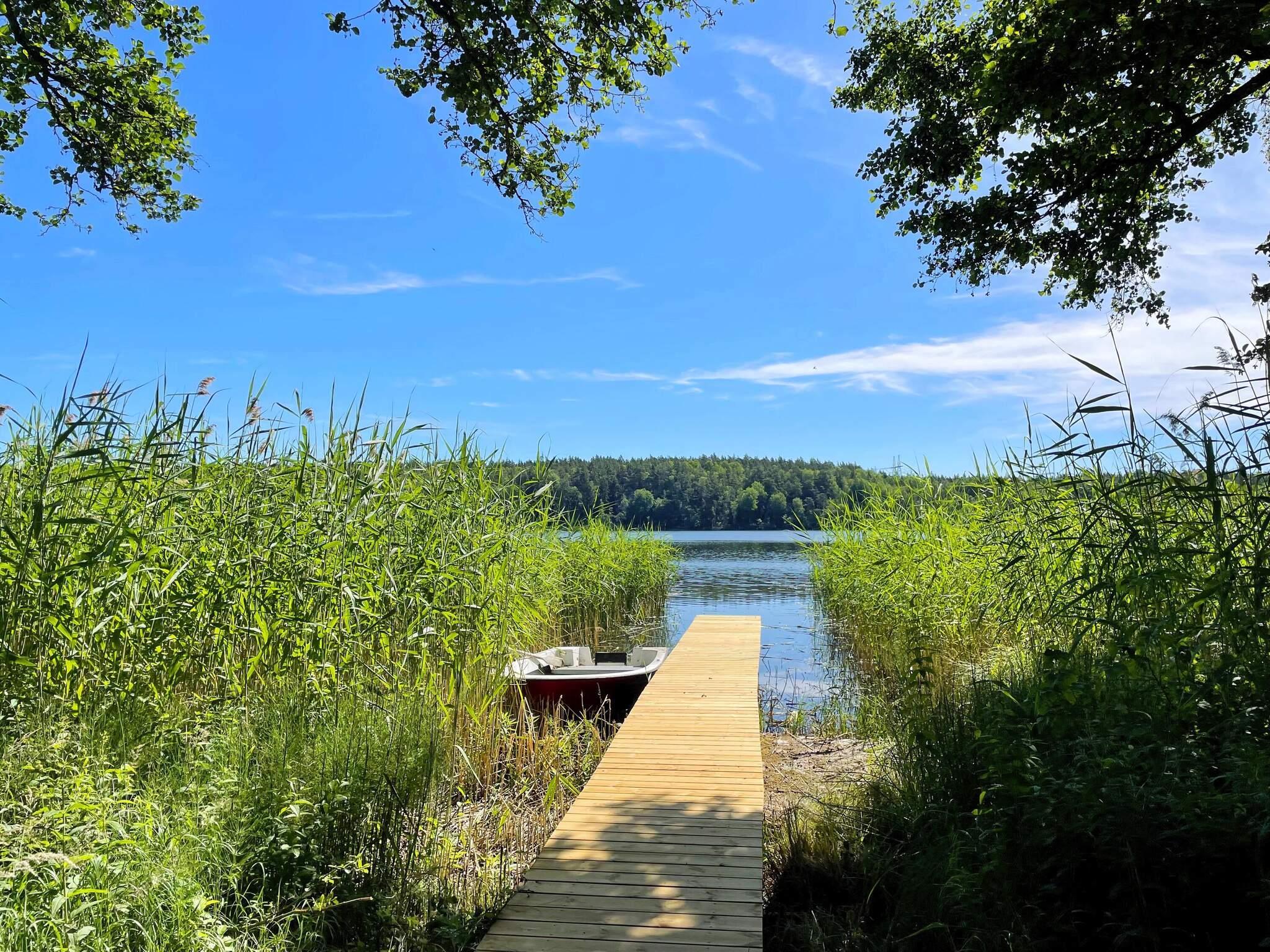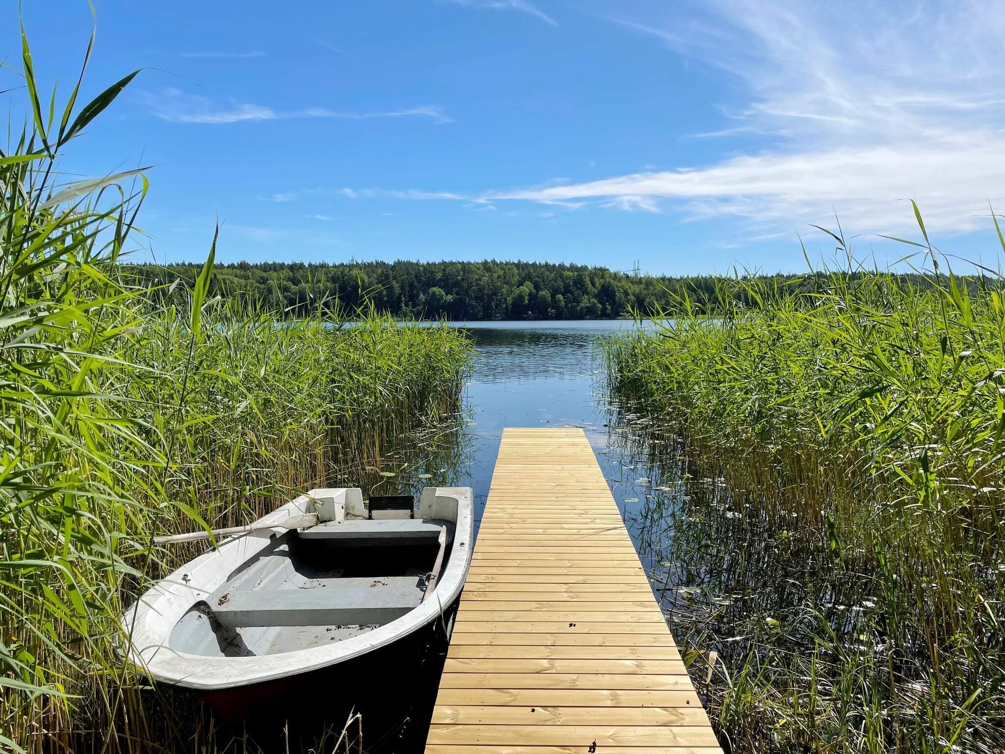 Direkt unterhalb der Hütte befindet sich ein Steg, an dem ein Ruderboot für Sie bereitsteht. Zum Schwimmen eignet sich der nur wenige Meter entfernte, abgeschiedene Strand am besten, der über einen kurzen Weg erreichbar ist. Alternativ können Sie von den Klippen aus in die entgegengesetzte Richtung schwimmen.