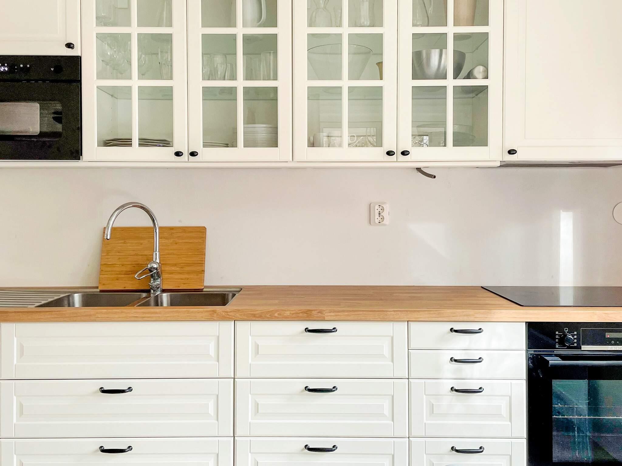 Küche: E-Herd, Kühl-Gefrier-Kombi, Mikrow., Kaffeem., Brunnenwasser