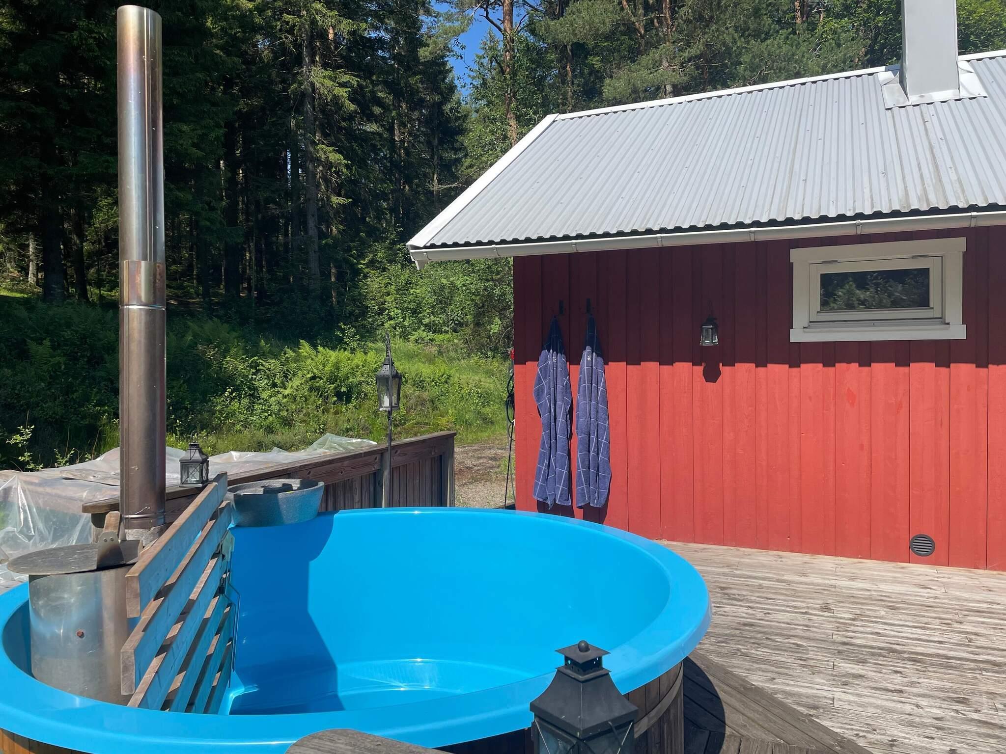 In der Hütte erwartet Sie eine Küche mit Gasherd, Mikrowelle, Kühl-/Gefrierschrank und Geschirrspüler sowie ein Esstisch mit Stühlen. Das Schlafzimmer verfügt über ein kleineres Doppelbett (140 cm), und das Wohnzimmer lädt mit einem geräumigen Sofa, einem Fernseher mit Chromecast und einem Kaminofen zum Entspannen ein, der an kühlen Abenden für wohlige Wärme sorgt. Das Badezimmer ist mit Dusche, Holztoilette, Waschbecken und Waschmaschine ausgestattet. WLAN ist hier ebenfalls vorhanden, im Gegensatz zum Nebengebäude. Draußen am Ferienhaus befindet sich eine Terrasse, und im Abstellraum hinter dem Haus finden Sie einen tragbaren Grill – ideal für ein gemütliches Abendessen an lauen Sommerabenden. Für Familien mit Kindern stehen ein Reisebett und ein Hochstuhl zum Ausleihen bereit – bitte geben Sie uns vor Ihrer Ankunft Bescheid.