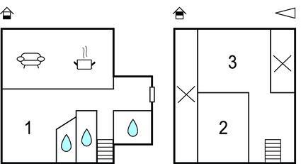 Schlafzimmer (nr. 2) - 1 Schlafmöglichkeit. (Einzelbett(en)). 2 Schlafmöglichkeiten. (Doppelbett(en)).