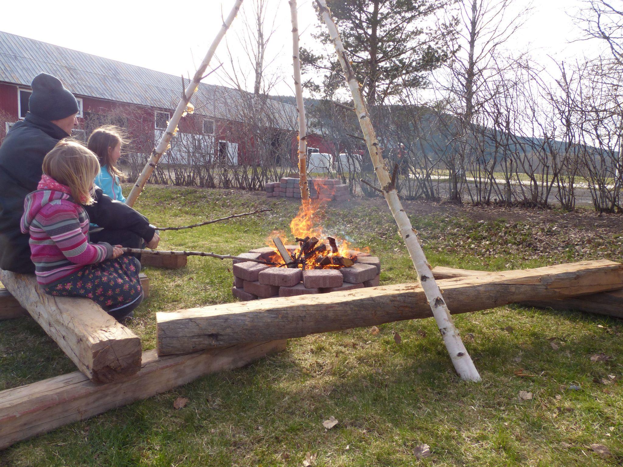 An den lauen Sommerabenden kann man am Fluss die untergehende Sonne genießen, am Lagerfeuer selbst gefangenen Fisch grillen oder auch einfach nur die grandiose Stimmung und die Ruhe der Natur auf sich wirken lassen. Ab und zu schaut auch mal ein Biberpaar vorbei, das sich ganz in der Nähe niedergelassen hat. Und sogar bei Regen könnt ihr auf der überdachten Veranda inmitten der Natur im Freien sitzen.