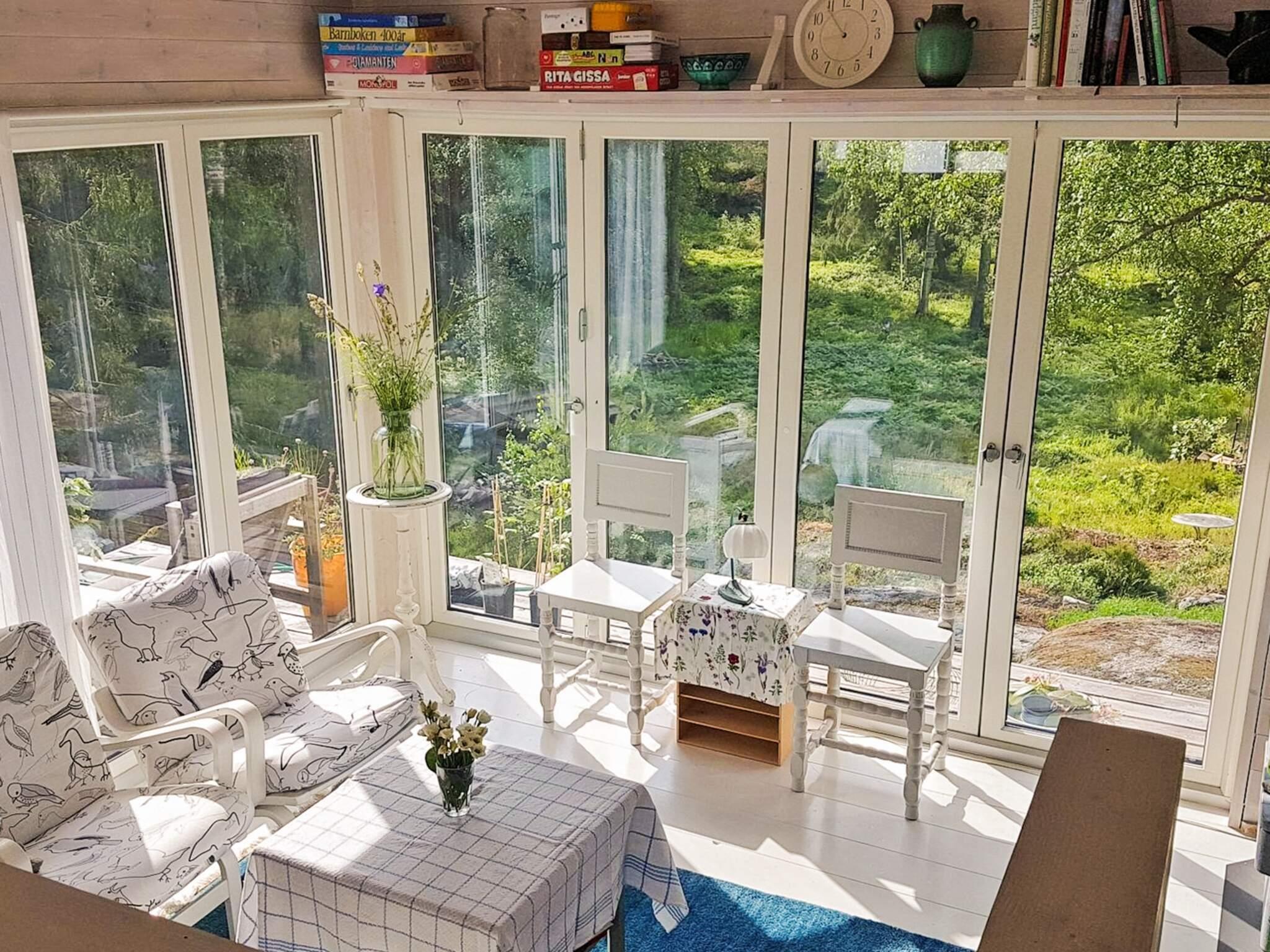 Das gemütliche, architektonisch gestaltete Ferienhaus thront hoch oben auf dem Grundstück und bietet mehrere Veranden auf verschiedenen Ebenen, von denen aus man den ganzen Tag die Sonne genießen kann. Das Ferienhaus erstreckt sich über zwei Etagen: Im Obergeschoss befinden sich zwei Schlafzimmer mit je zwei Betten. Im Erdgeschoss liegen Küche, Bad und Wohnzimmer. Zahlreiche Fenster bieten einen herrlichen Blick auf das reizvolle Felsgrundstück. Ein kleiner Pfad führt vom Haus hinunter zu einer Sauna und einer Außendusche. Auf der Veranda neben der Küche befindet sich eine praktische Außenküche mit Grill und Sitzgelegenheiten für gemütliche Abendessen.