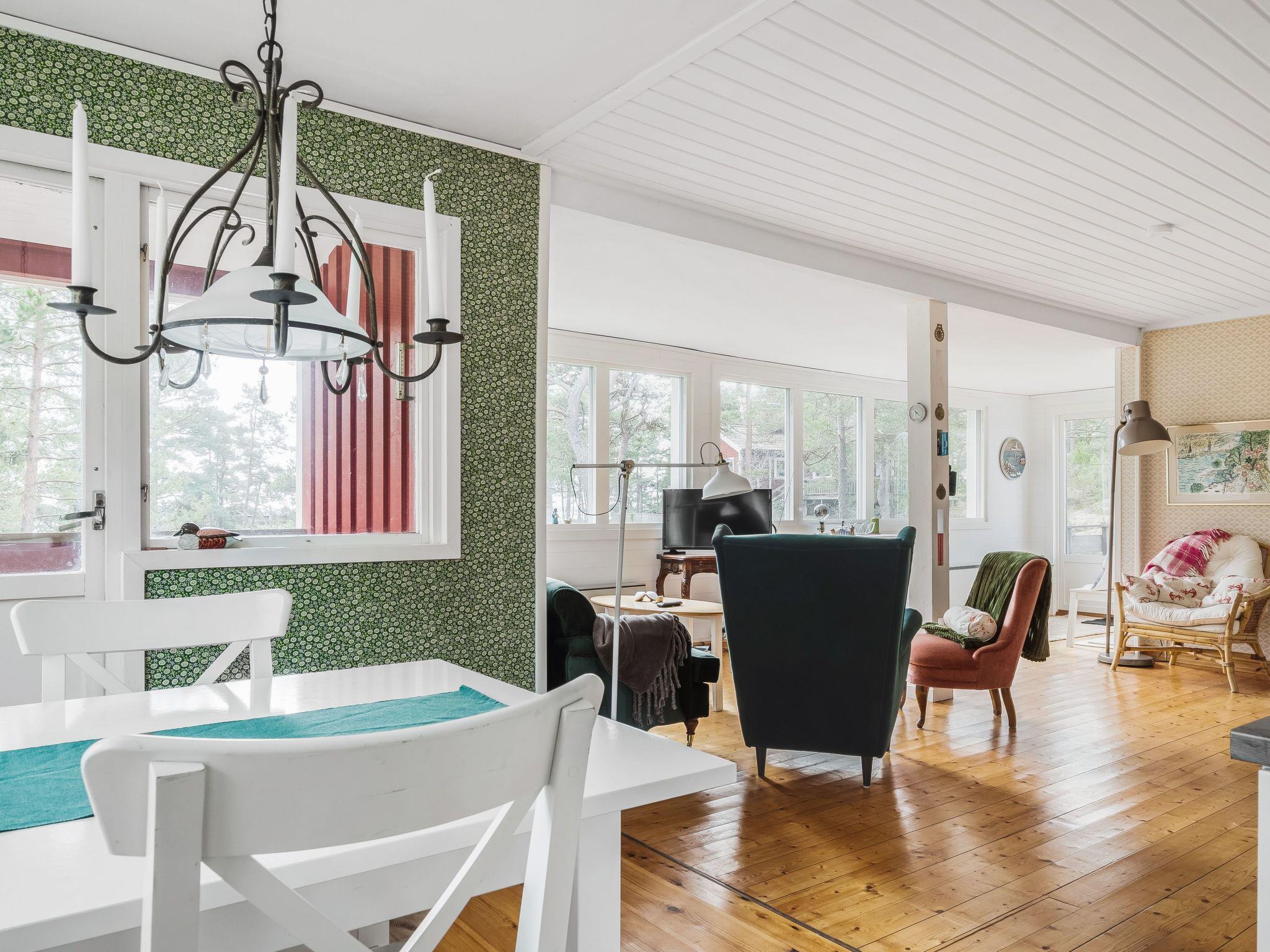 "Smultronstället", 3-Zimmer-Haus 65 m2. Komfortabel und gemütlich eingerichtet: offenes Wohn-/Esszimmer mit Digital-TV. Ausgang zum Balkon. 1 Doppelzimmer mit 1 Doppelbett (160 cm, Länge 200 cm). 1 Kinderzimmer mit 2 Klappbetten (80 cm, Länge 195 cm). 1 Doppelzimmer 10 m2 mit 2 Betten (90 cm, Länge 200 cm). Ausgang zum Garten. Kleine, offene Küche (4 Induktionskochplatten, Toaster, Wasserkocher, Mikrowelle, Tiefkühler, elektrische Kaffeemaschine). Dusche/WC. E-Heizung. Holzdielenboden. Kleiner Balkon 3 m2, grosse Terrasse 15 m2. Terrassenmöbel, Gartengrill. Sehr schöne Sicht auf den Wald. Bitte beachten: ein Doppelzimmer liegt außerhalb der Wohnung. Nichtraucher-Haus. Maximal 1 Haustier/Hund erlaubt. HÖL 1:154
