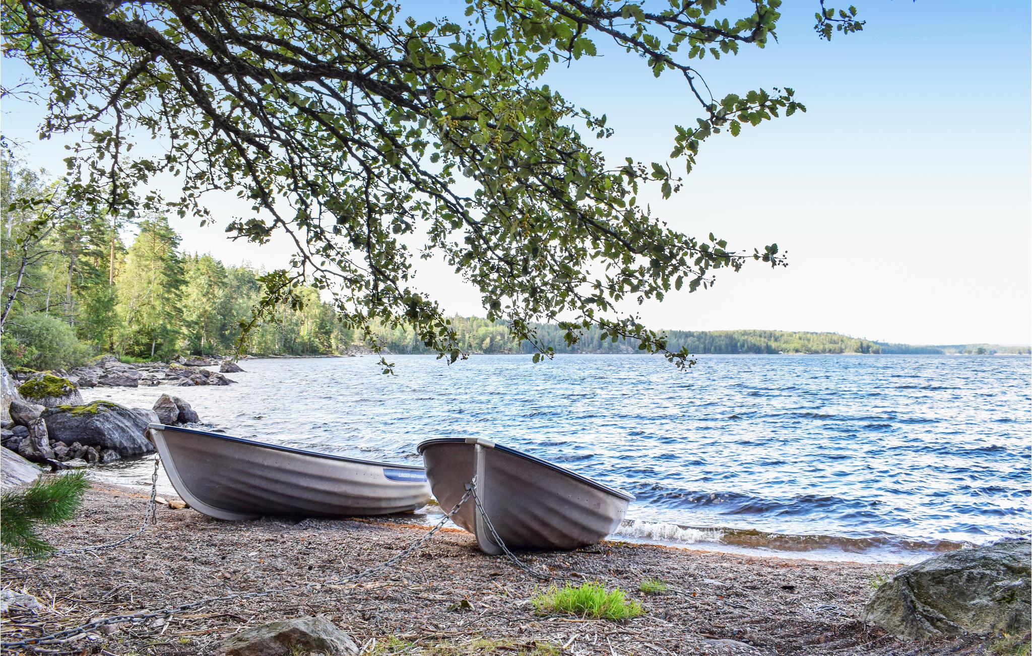 Hier wohnen Sie im Obergeschoss eines Hauses, in dem auch eine Wohnung zu vermieten ist. Am anderen Ende des Hauses finden Sie einen großen und schönen überdachten Balkon, auf dem Sie warme Sommerabende genießen oder an sonnigen Tagen Schatten suchen können. Im Haus finden Sie eine große Küche und Wohnzimmer in offenem Schnitt. Zwei Schlafzimmer, von denen eines ein Doppelbett hat und die anderen zwei Einzelbetten, Toilette und seperate Dusche, in denen Sie nur 400 m vom See entfernt wohnen. Dort finden Sie auch das Boot, das in der Miete enthalten ist. Es gibt auch einen Motor, den Sie beim Hausbesitzer mieten können. Es gibt außerdem eine holzbefeuerte Sauna direkt am Strand.