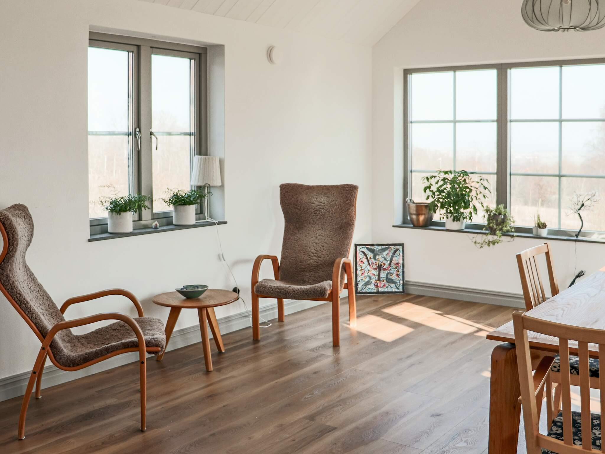 The house is located in a fantastically scenic location in Steninge church village, close to the beach in Steninge. You cannot miss visiting Gösta's restaurant and café or Kuststationens café. A little further north you will find the small bathing bay Glassvik. Here you will find fantastically beautiful and unique nature and rich bird life. The small beach is particularly suitable for families with children and those who want some peace and quiet. Just south is the community of Haverdal. Visit Särdals kvarn, which has both a café and a shop. It is only a short drive to Halmstad. Here you will find a wide range of entertainment with many restaurants, cafés and a wide range of shops, art and nature. Experience Tylösand's vibrant swimming and entertainment scene. Hike on Prince Bertil's path from Halmstad Castle to Ricardo's ice cream café in Möllegård. For those interested in golf, there are a number of golf courses in the surrounding area. It is also a short drive to the summer town of Falkenberg. Here you will find many nice small cafés, restaurants and shops.